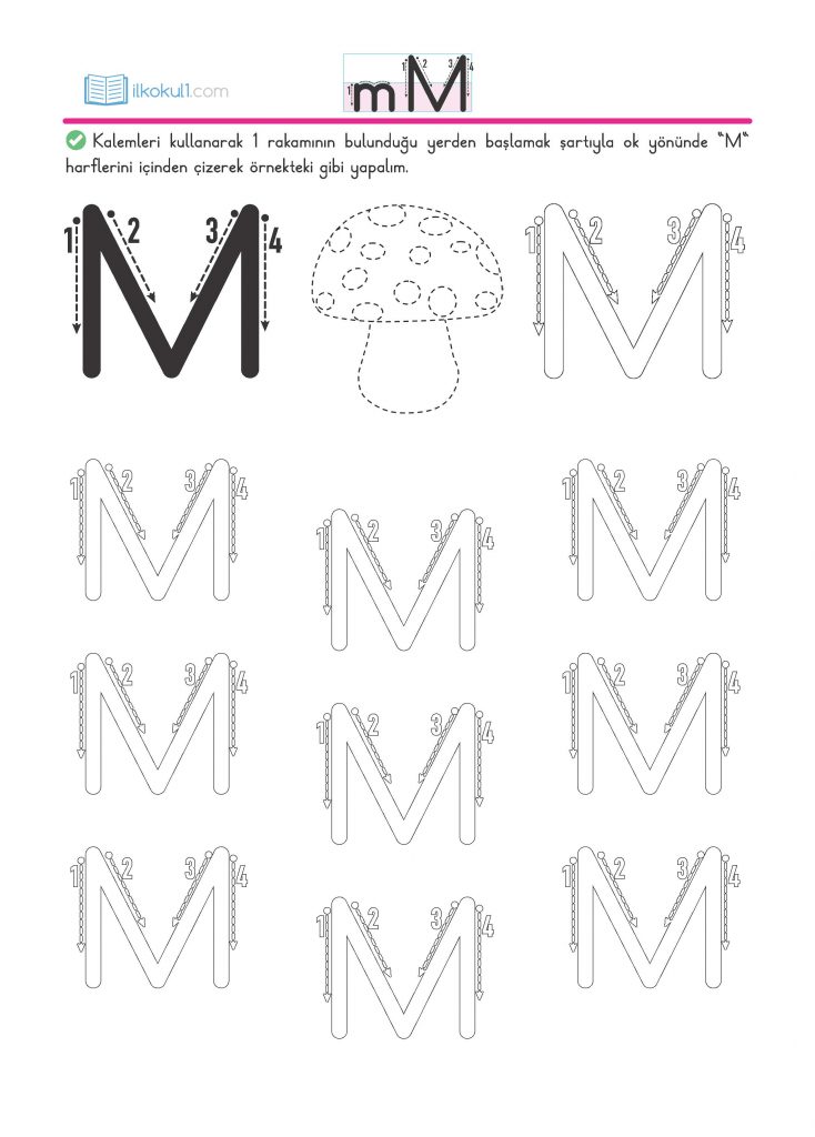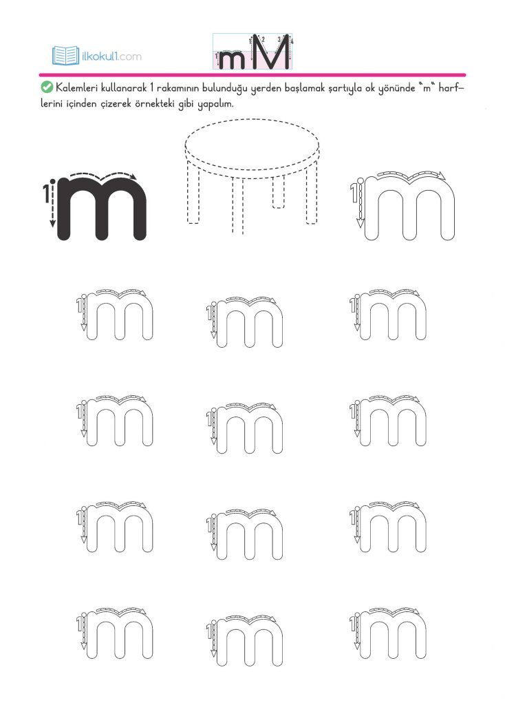 - Kalemle “m” harflerini ok yönünde içinden çizelim.