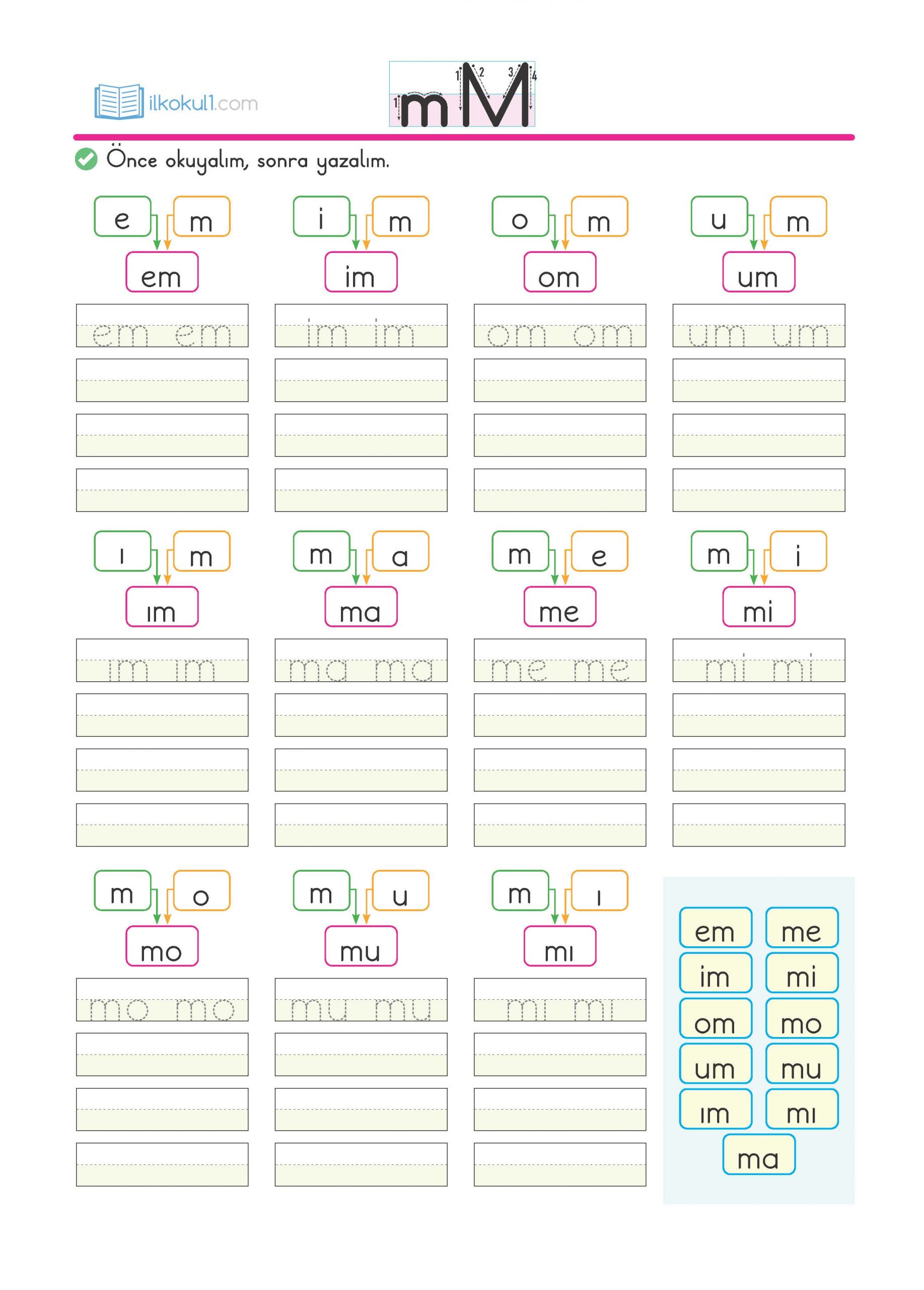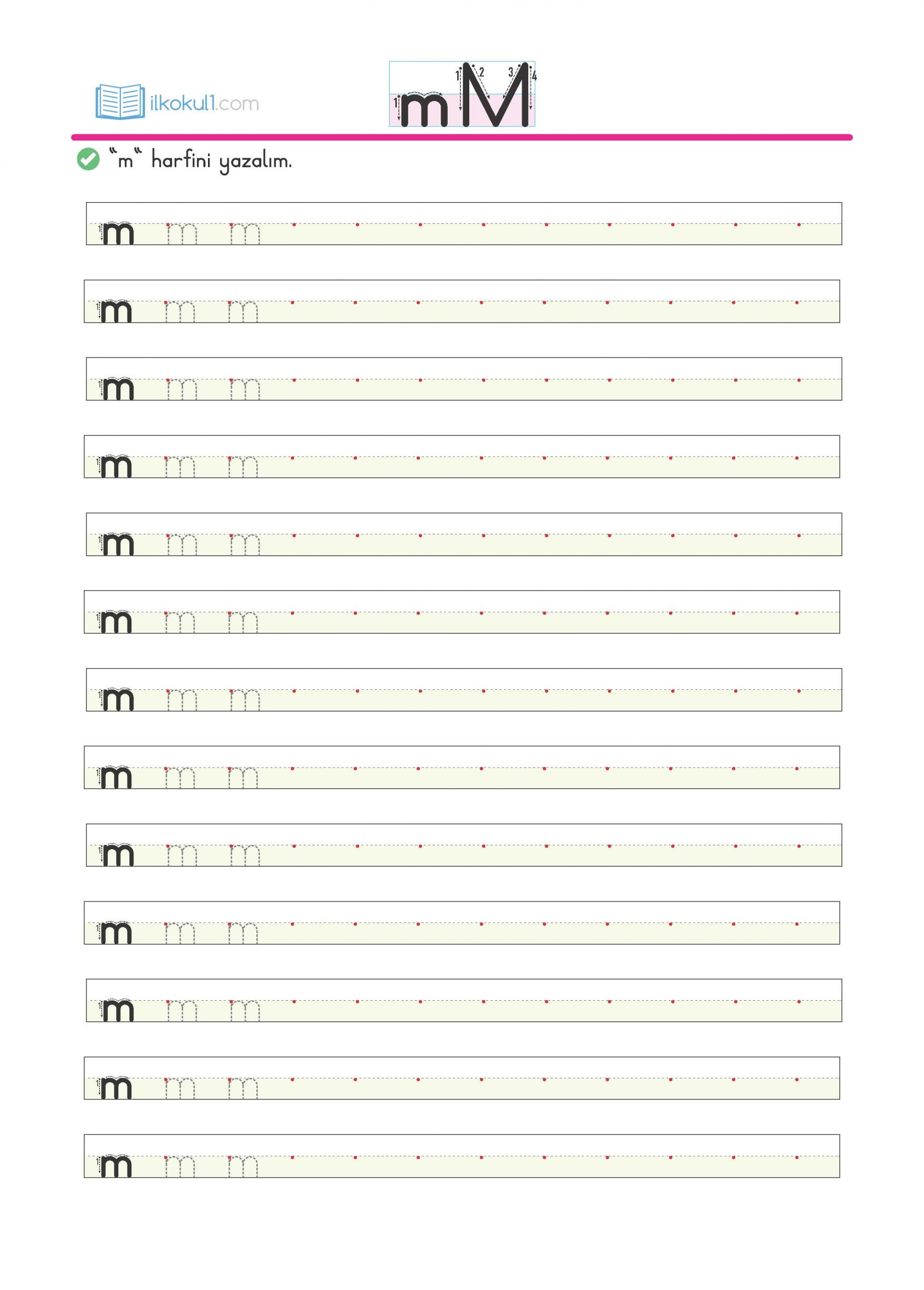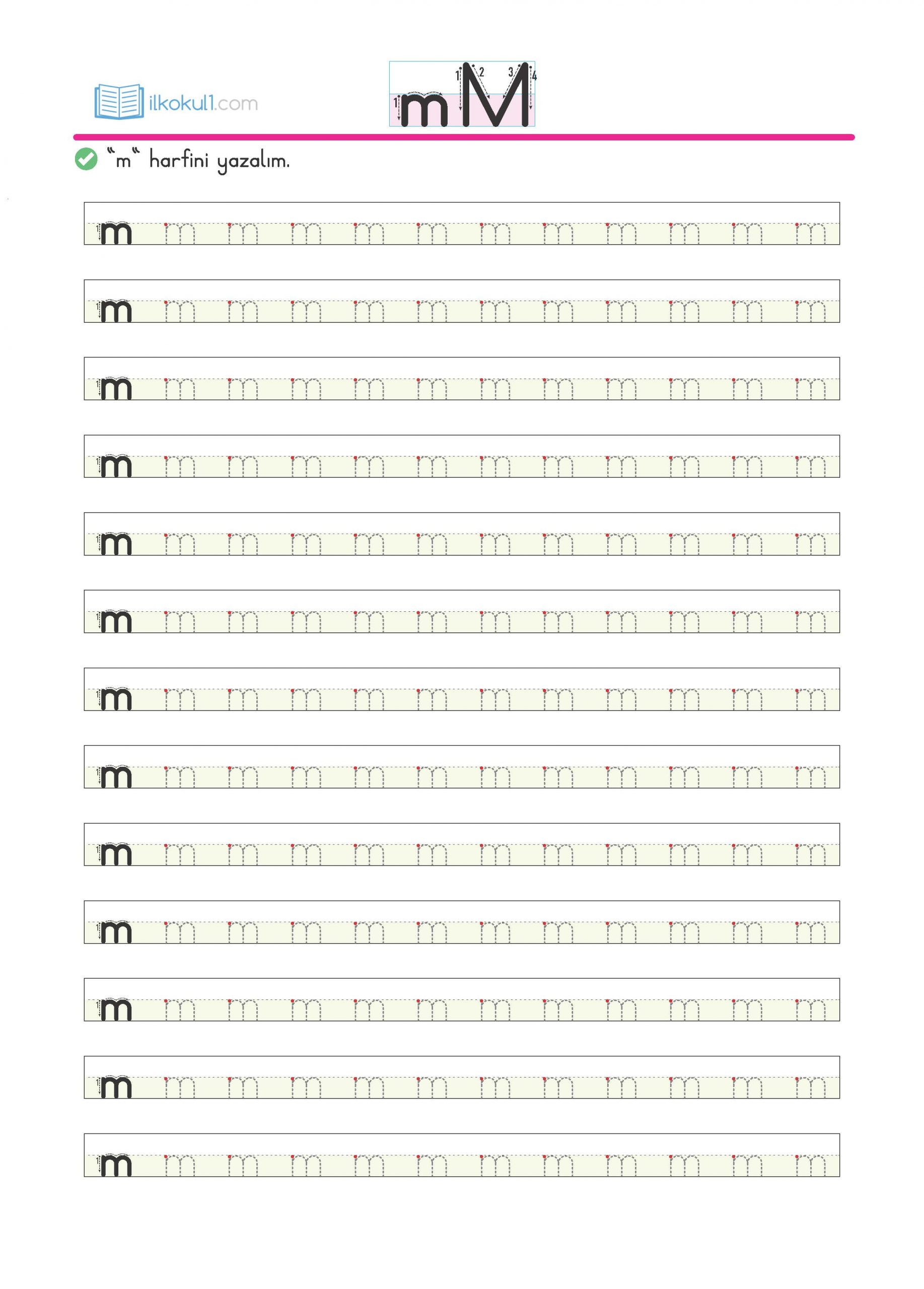 - “m” harfini yazalım.