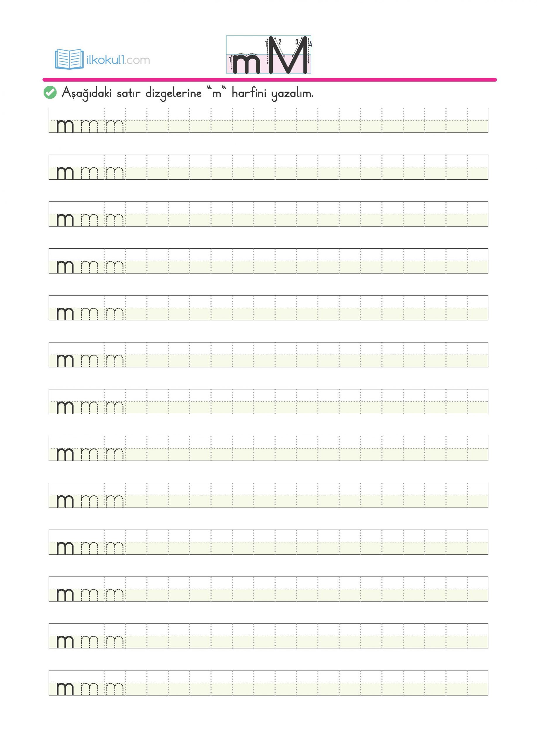- Aşağıdaki satır dizgelerine “m” harfini yazalım.
