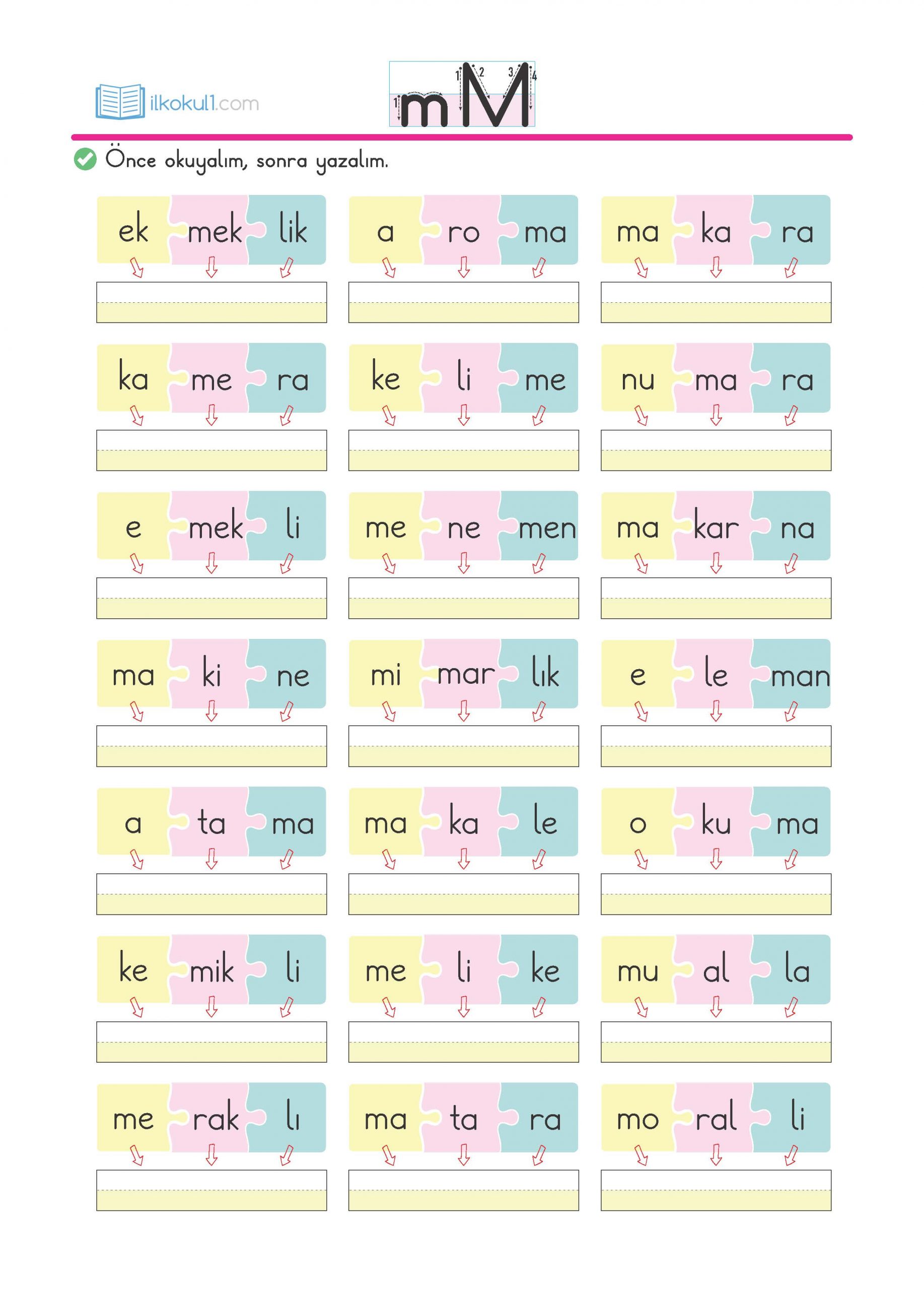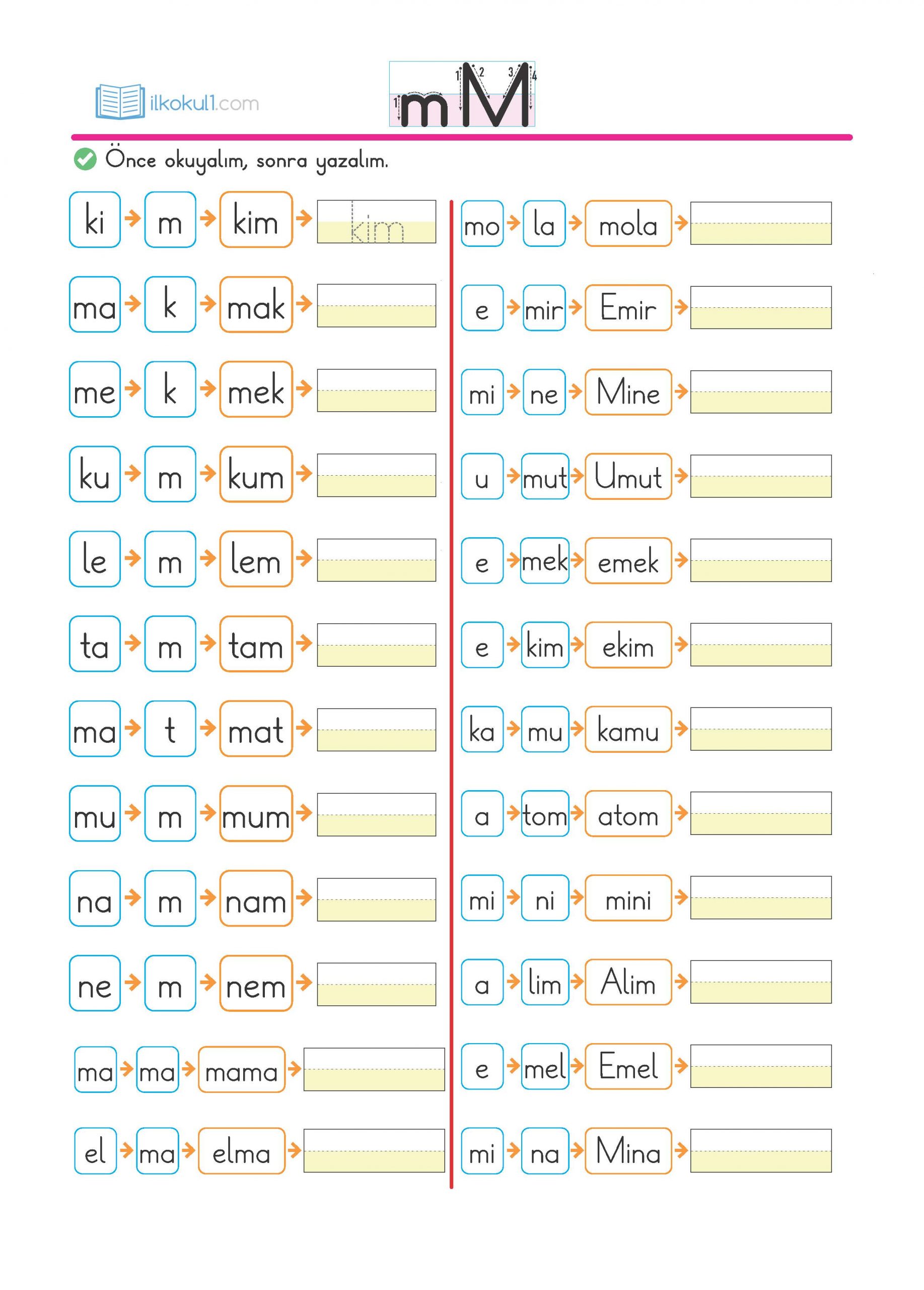 - kelimeleri okuyup yazalım.