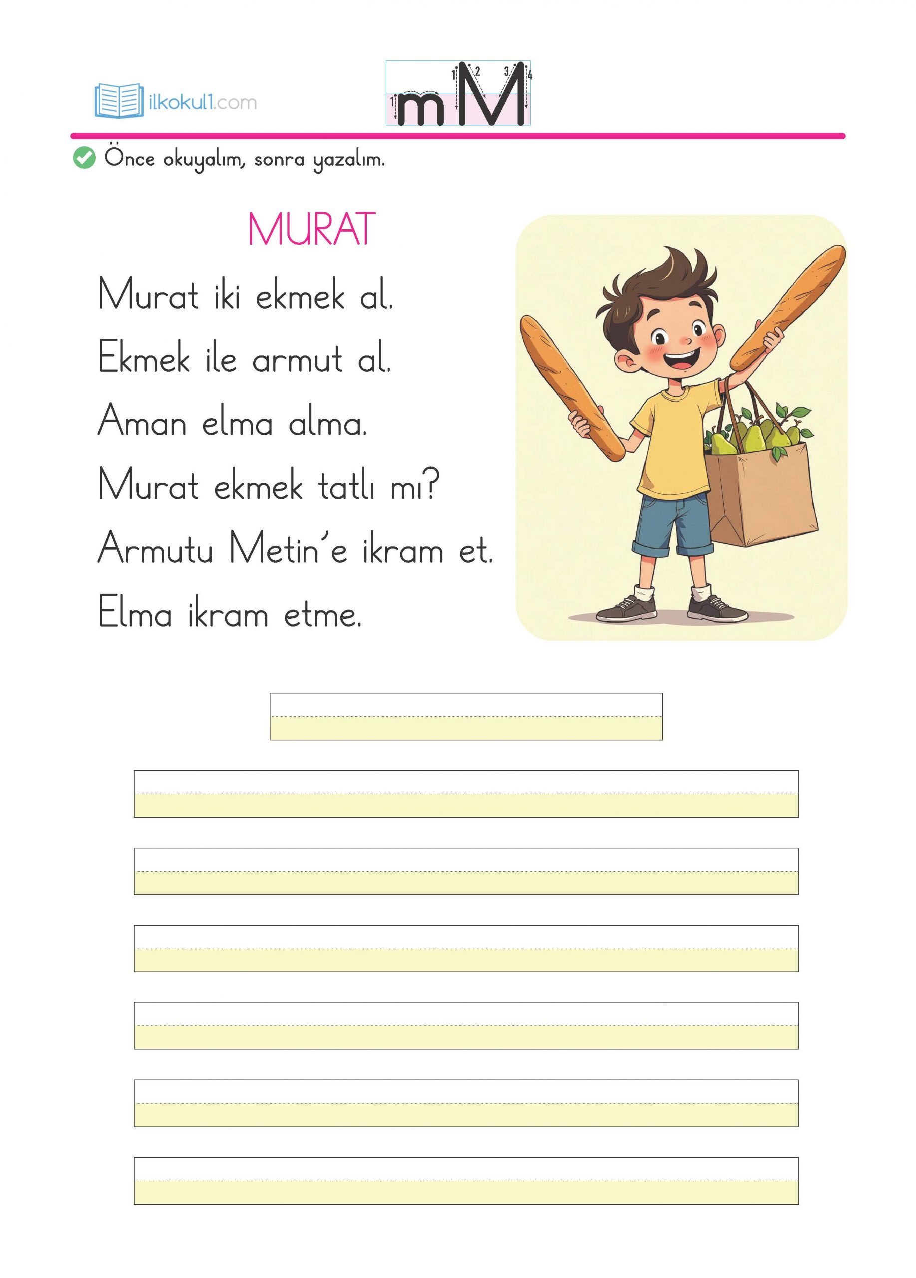 - Büyük ve küçük “m” harfini yazalım.