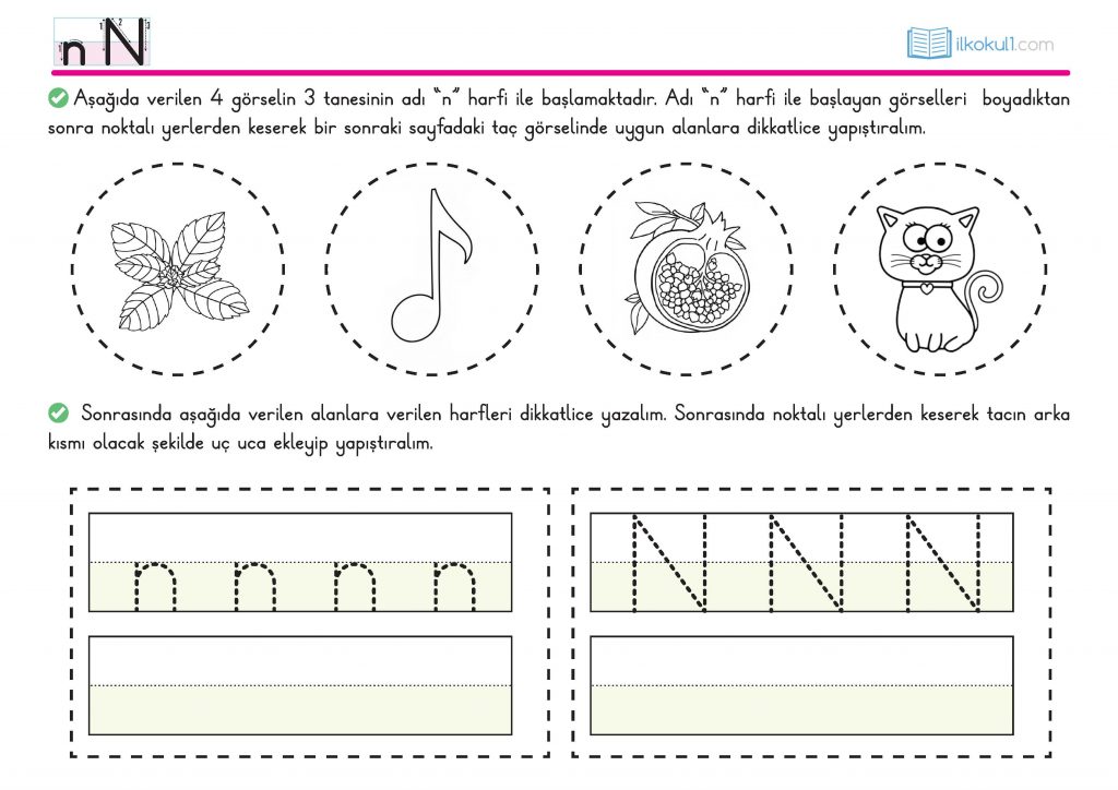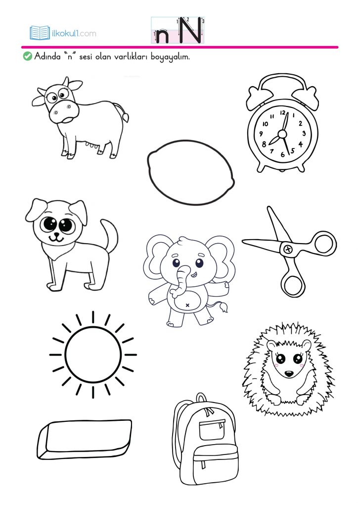 - Adı “n” harfi ile başlayan görselleri boyayıp keselim.