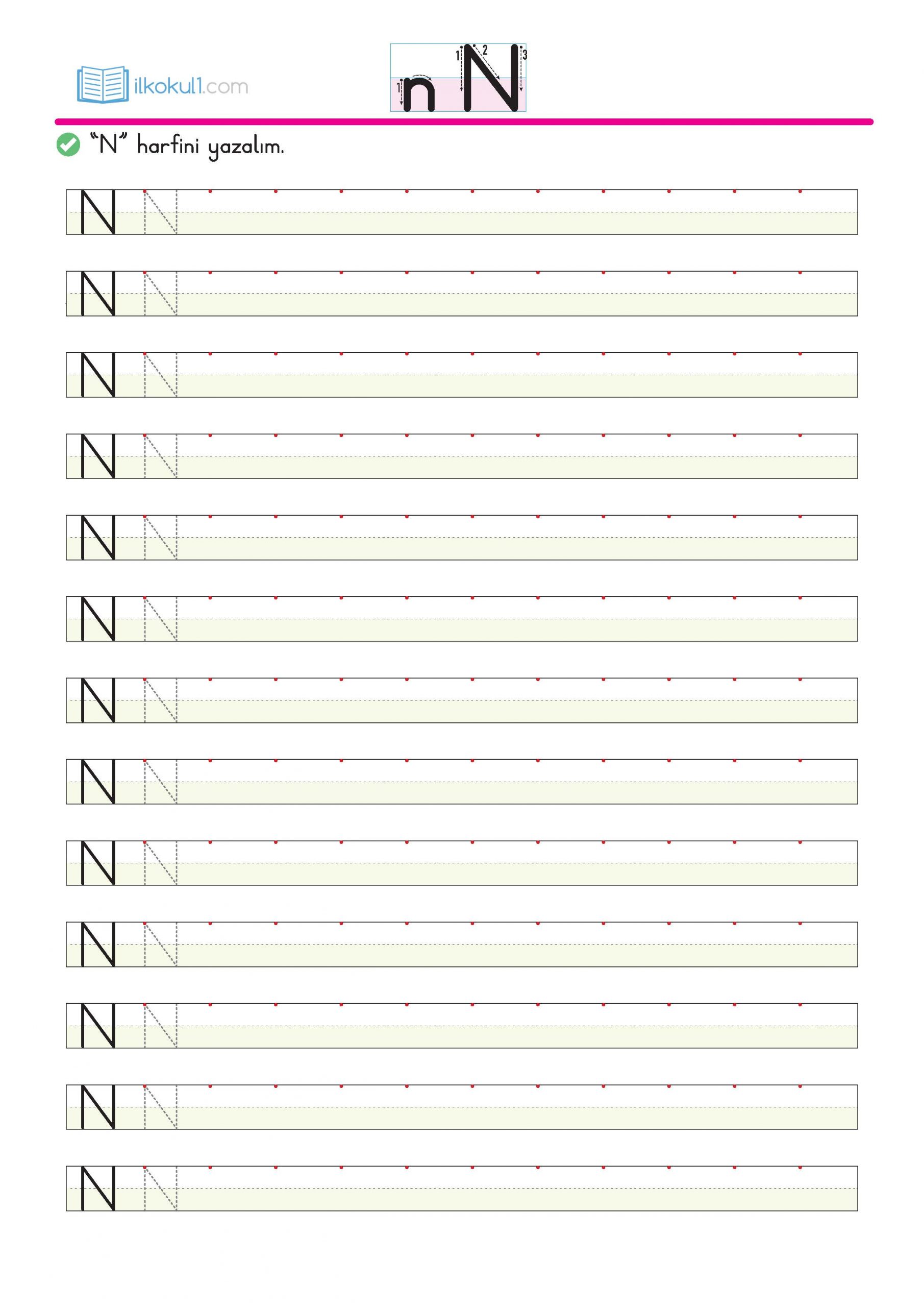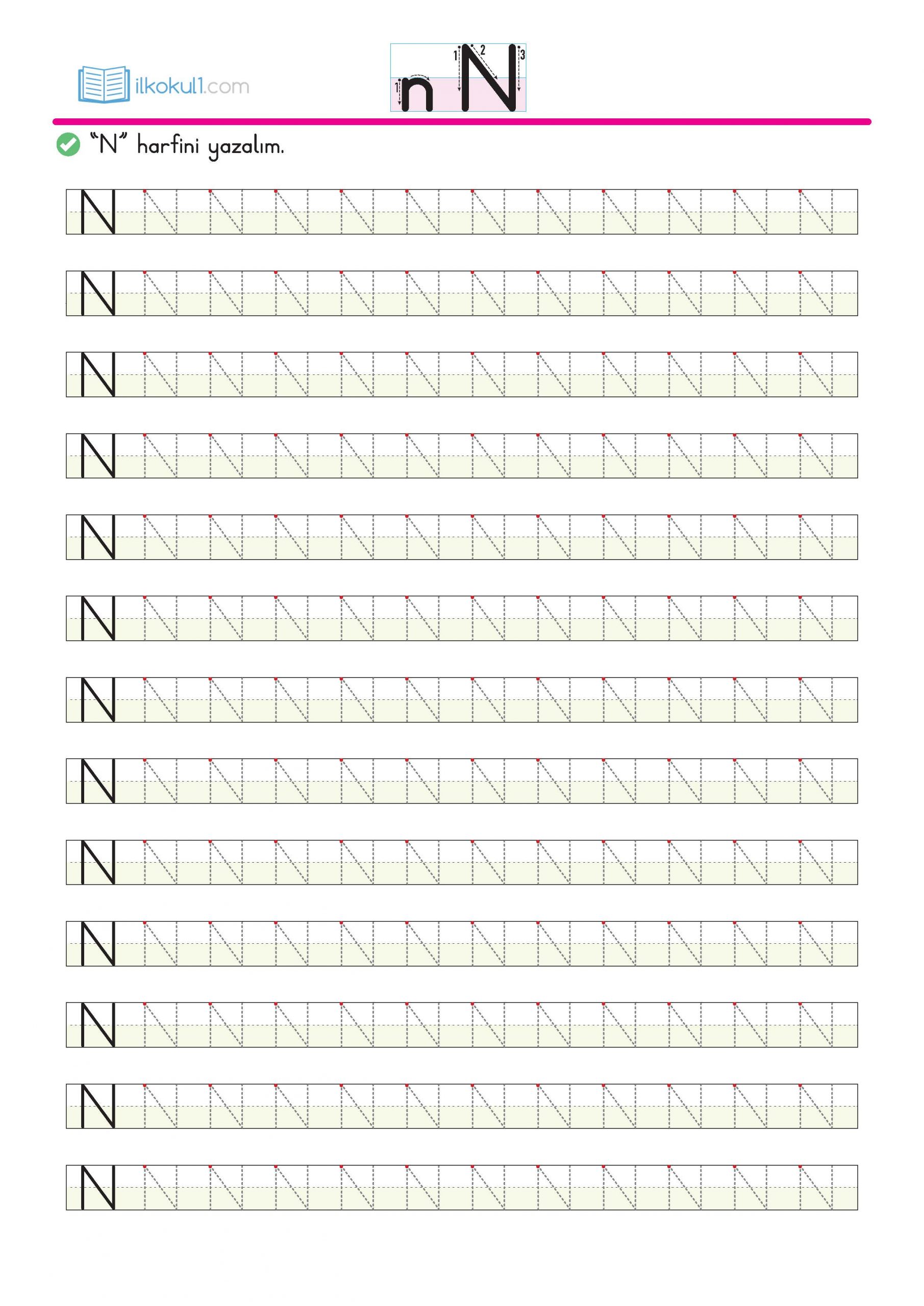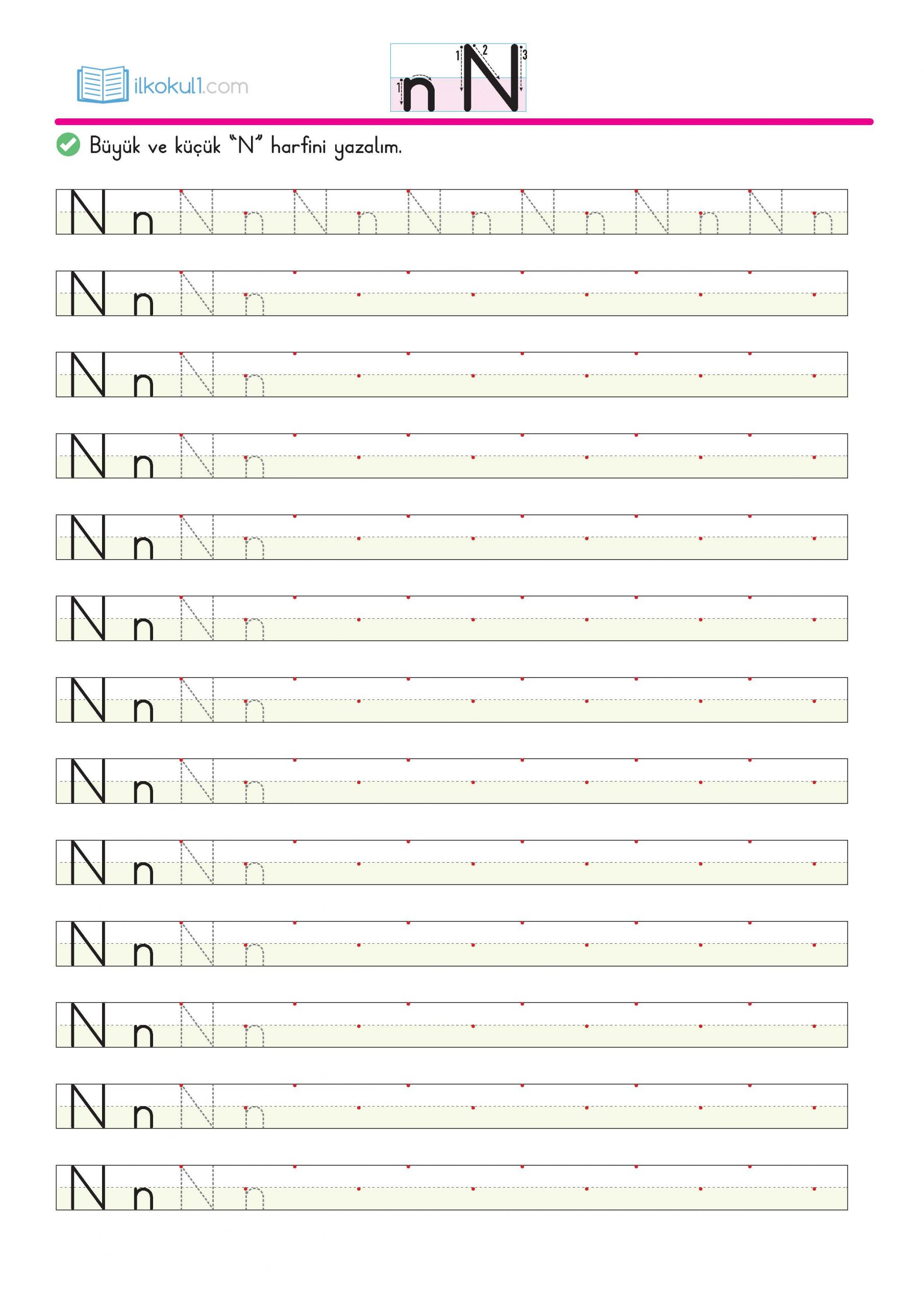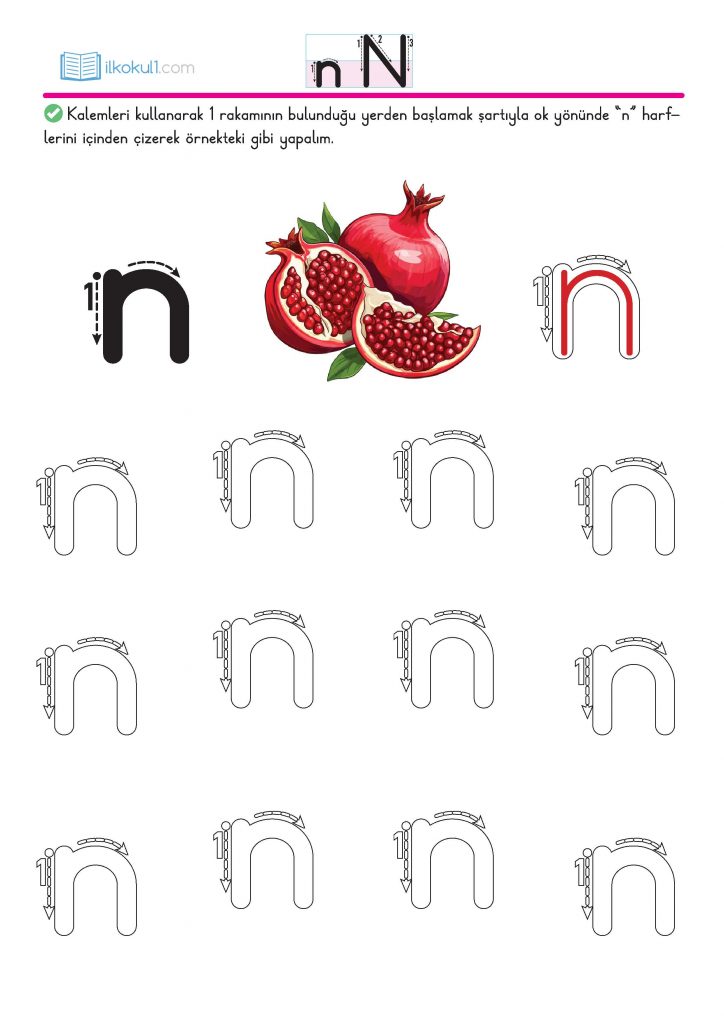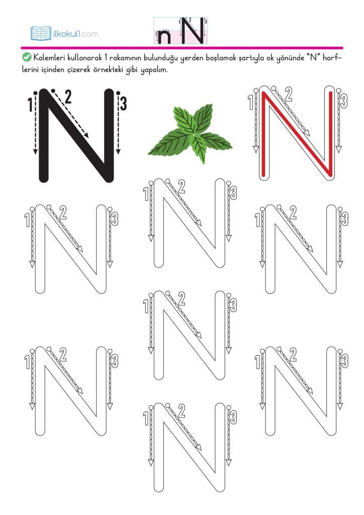- Kalemle “N” harflerini ok yönünde içinden çizelim.