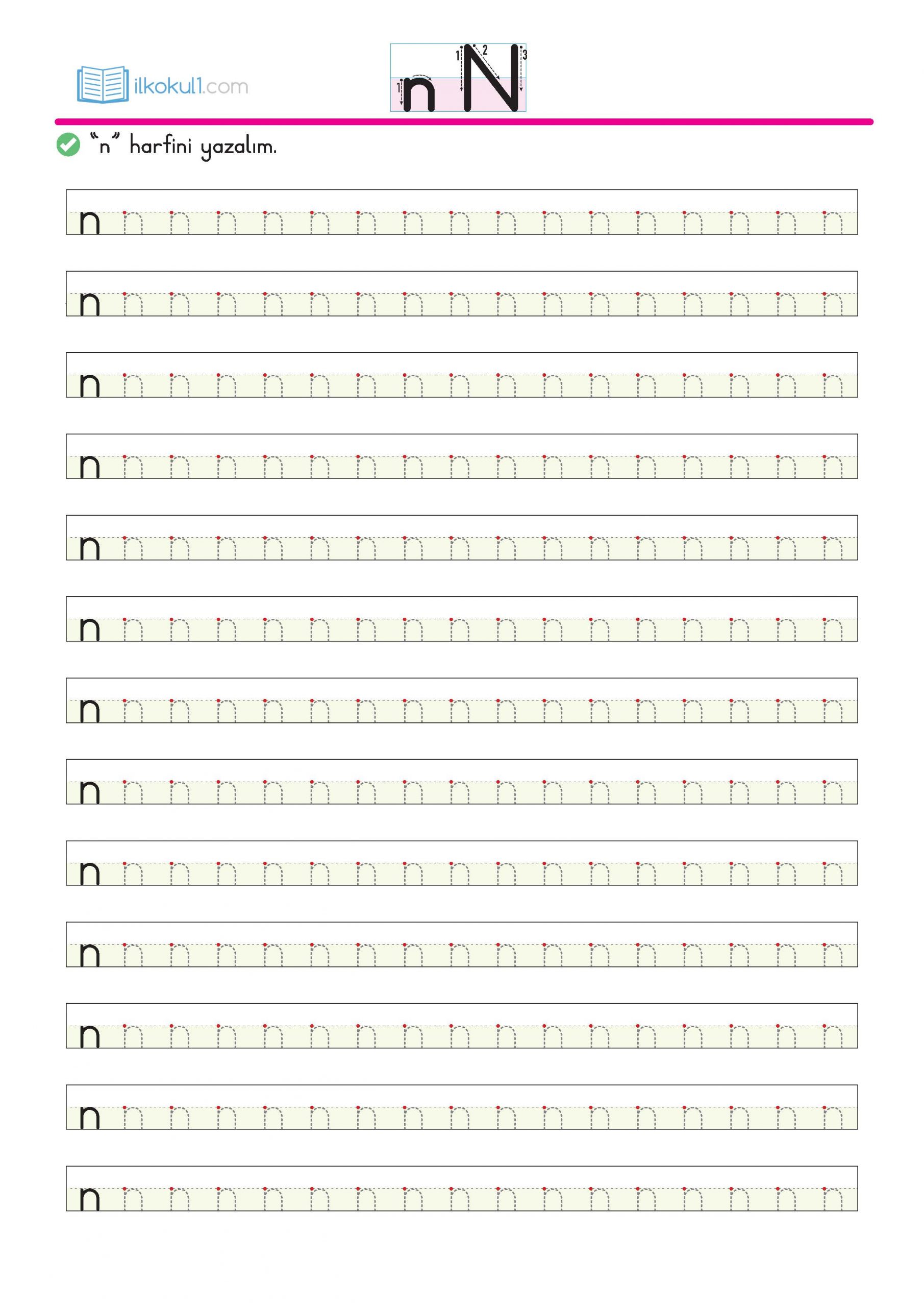 - Kalemle “n” harflerini ok yönünde içinden çizelim.