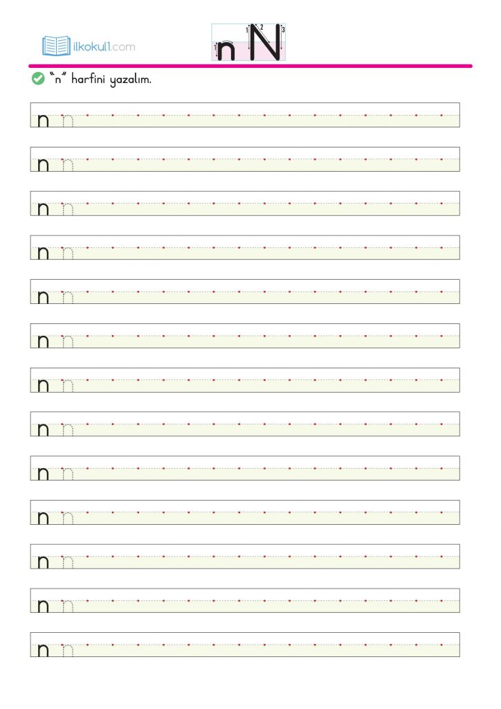 - Aşağıdaki satır dizgelerine “n” harfini yazalım.