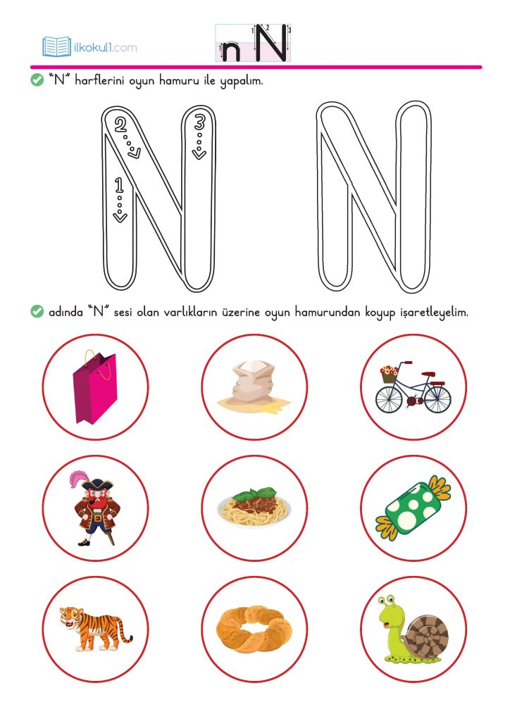 - Adında “n” sesi olan varlıkların üzerine oyun hamurundan koyup işaretleyelim.