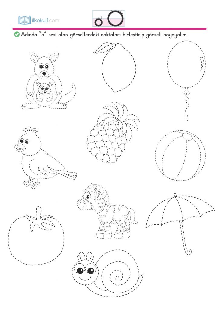 - Adında “o” sesi olan görsellerdeki noktaları birleştirip görseli boyayalım.