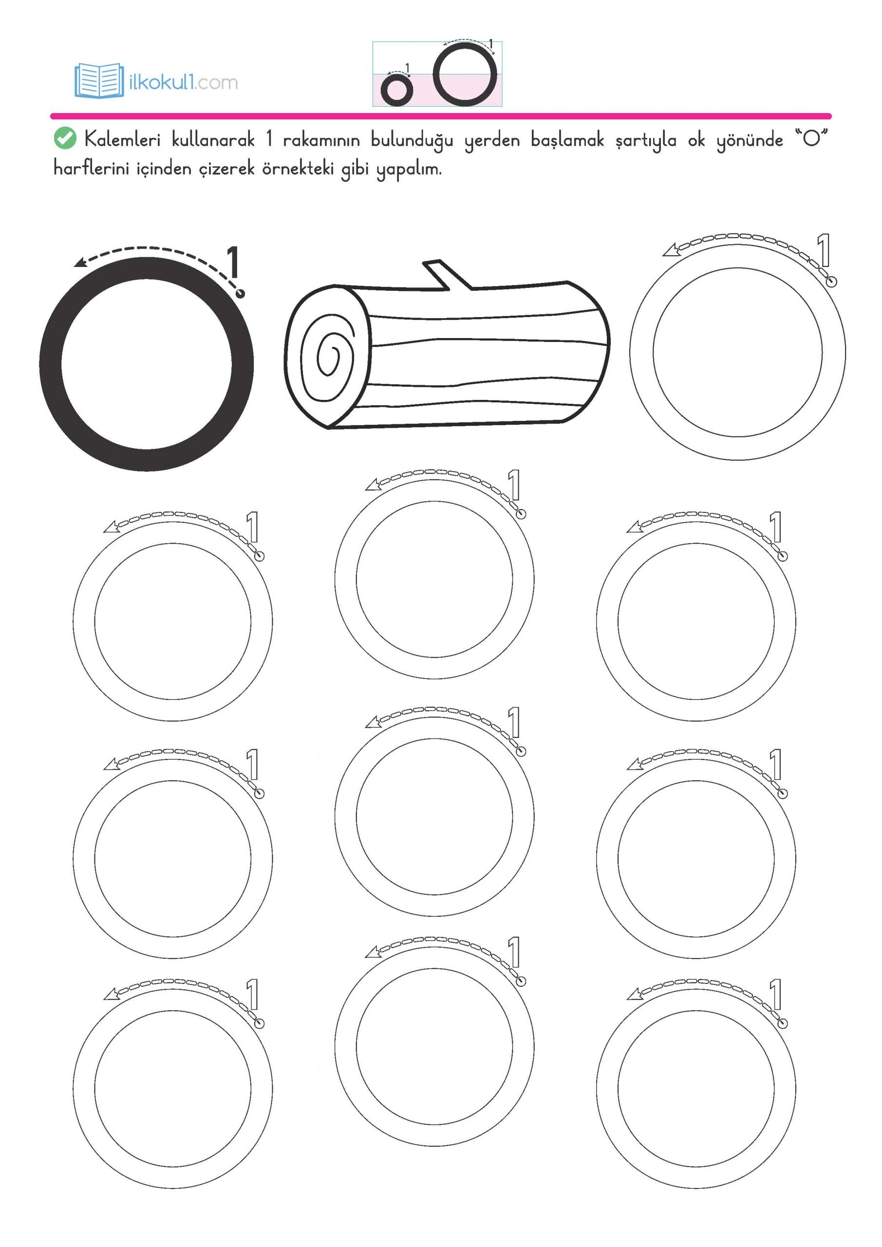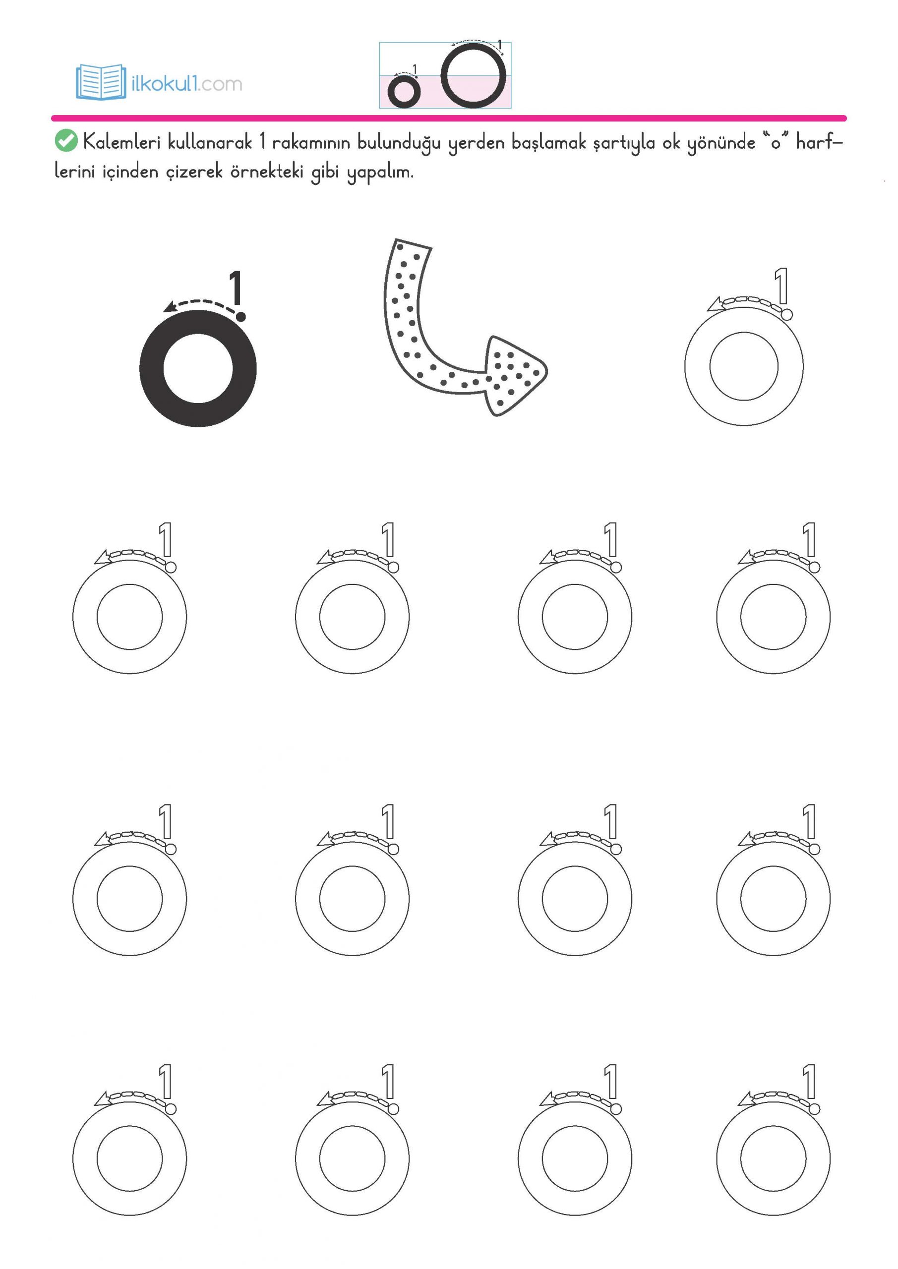 - Kalemle “o” harflerini ok yönünde içinden çizelim.