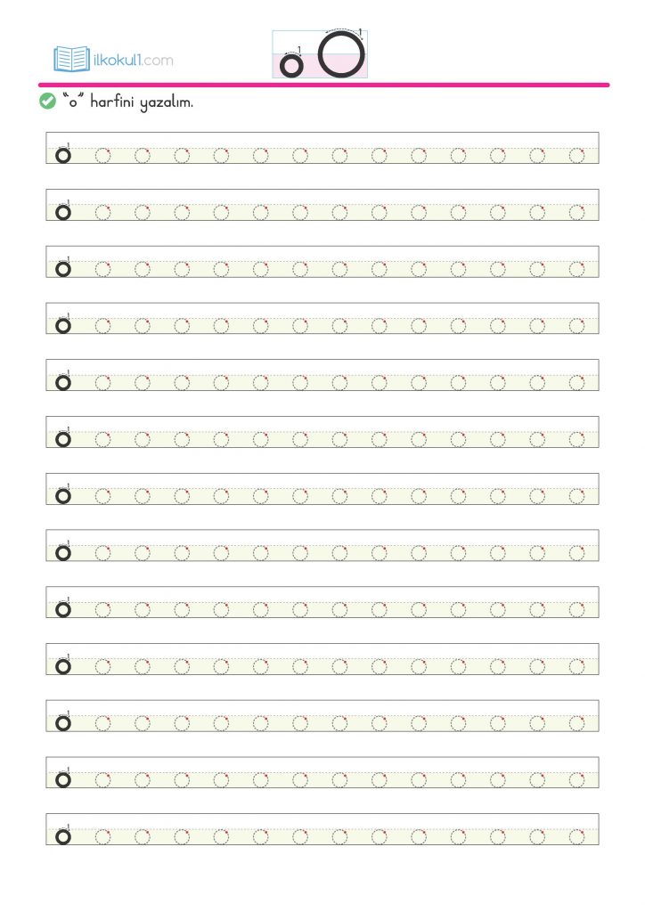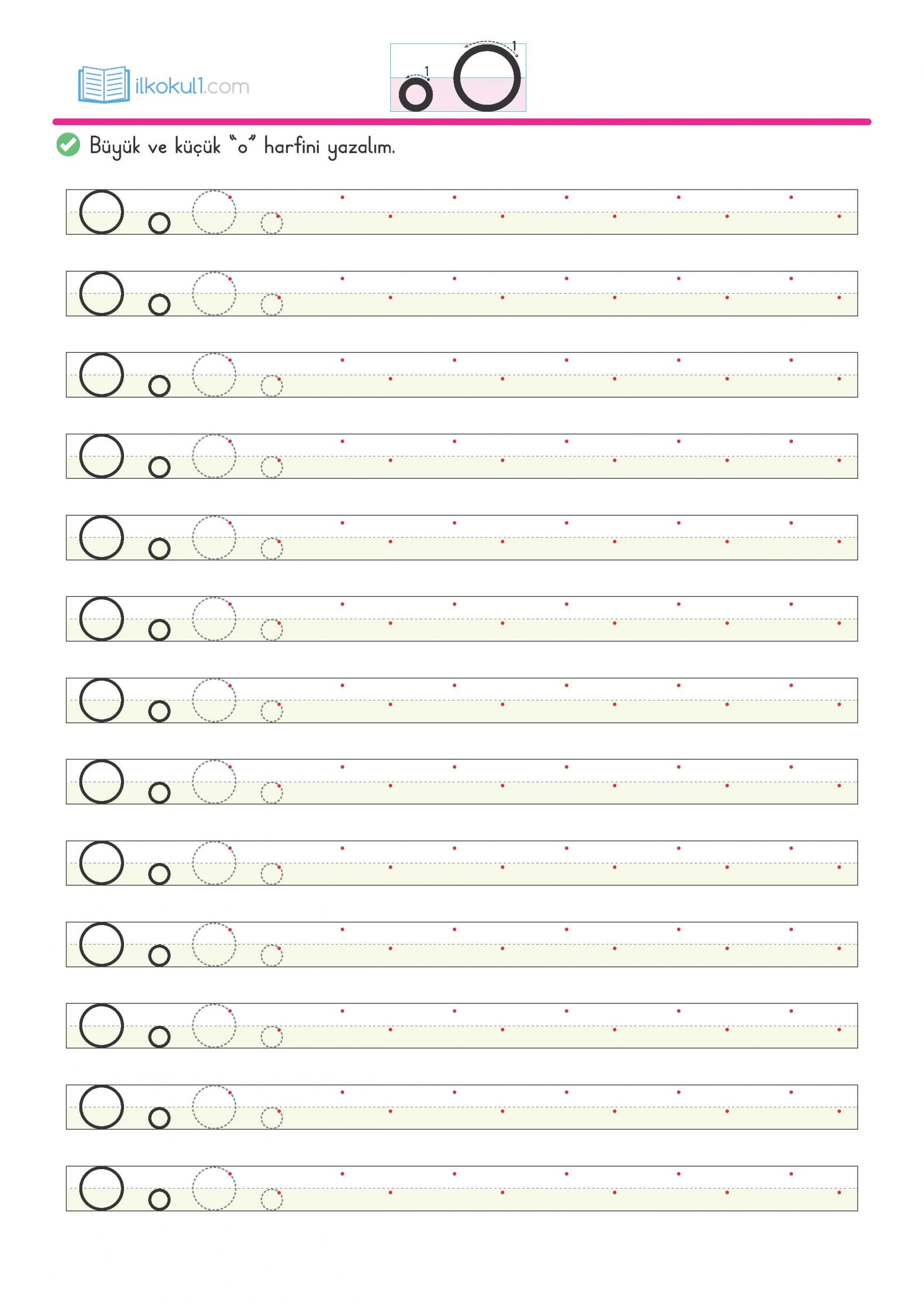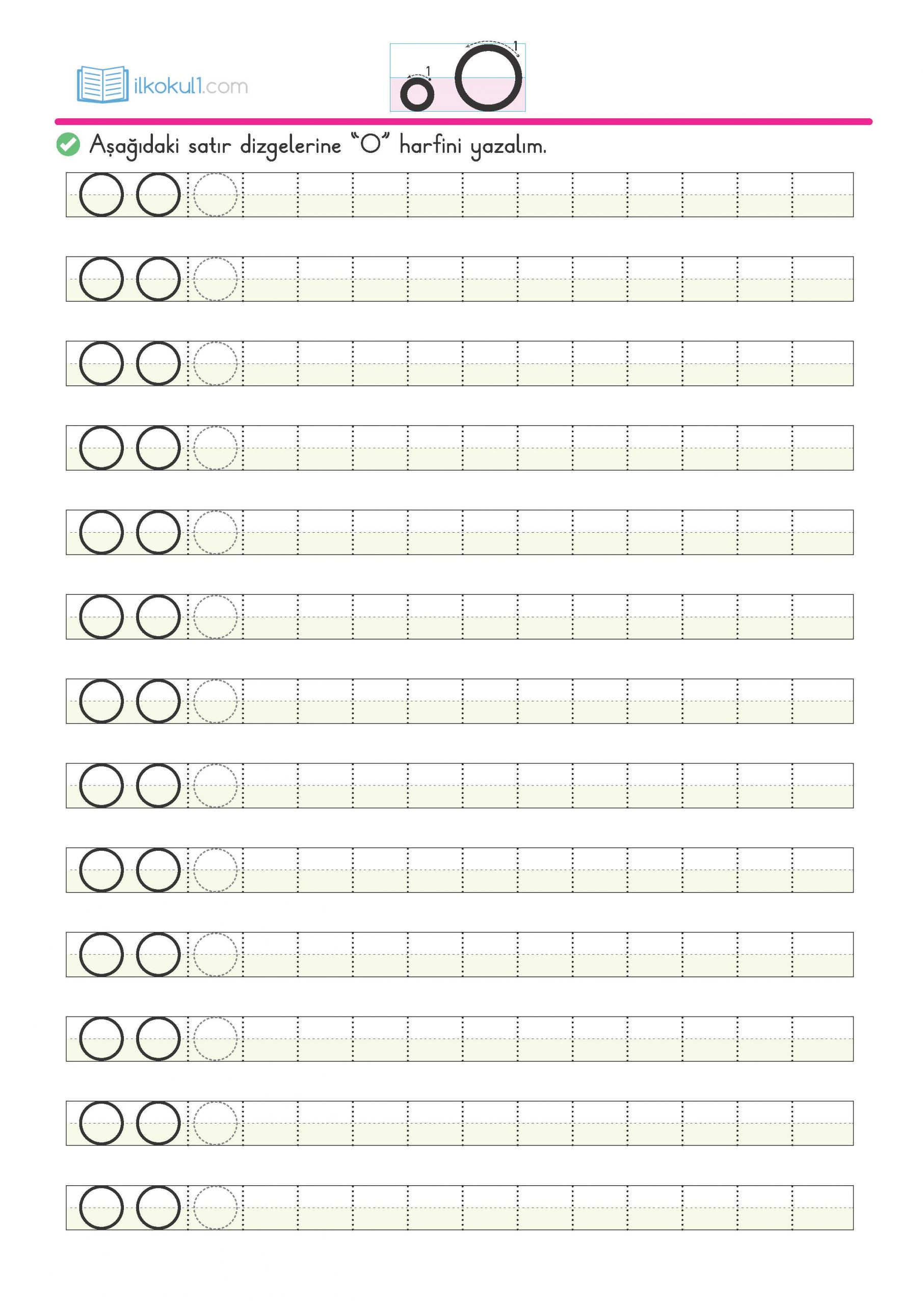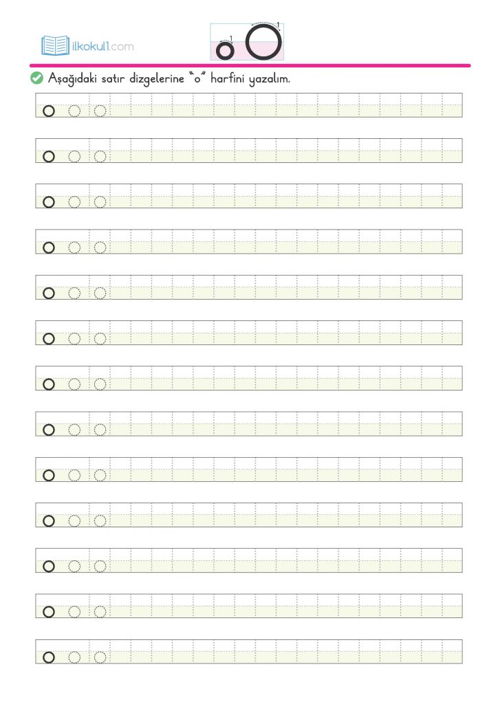 - Aşağıdaki satır dizgelerine “o” harfini yazalım.