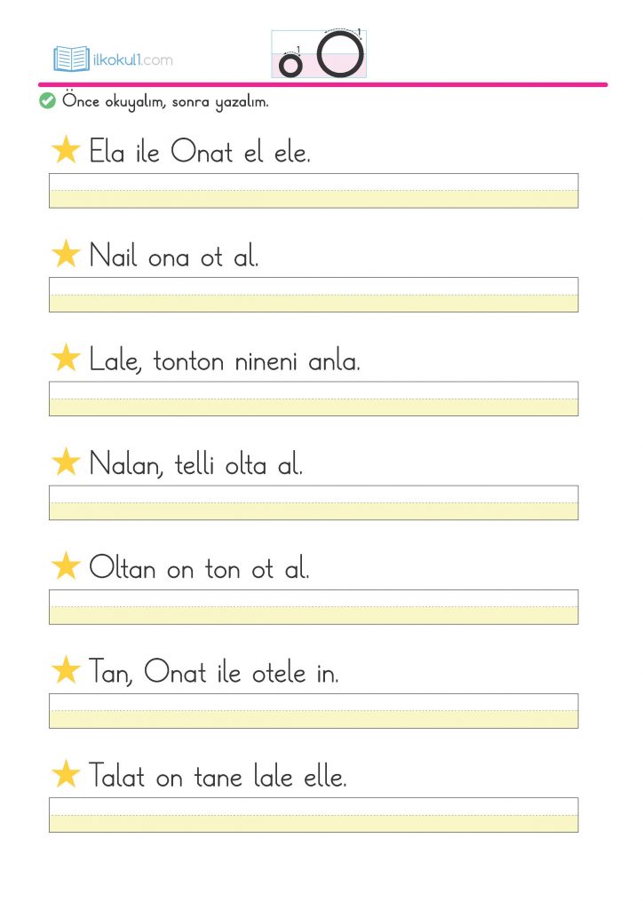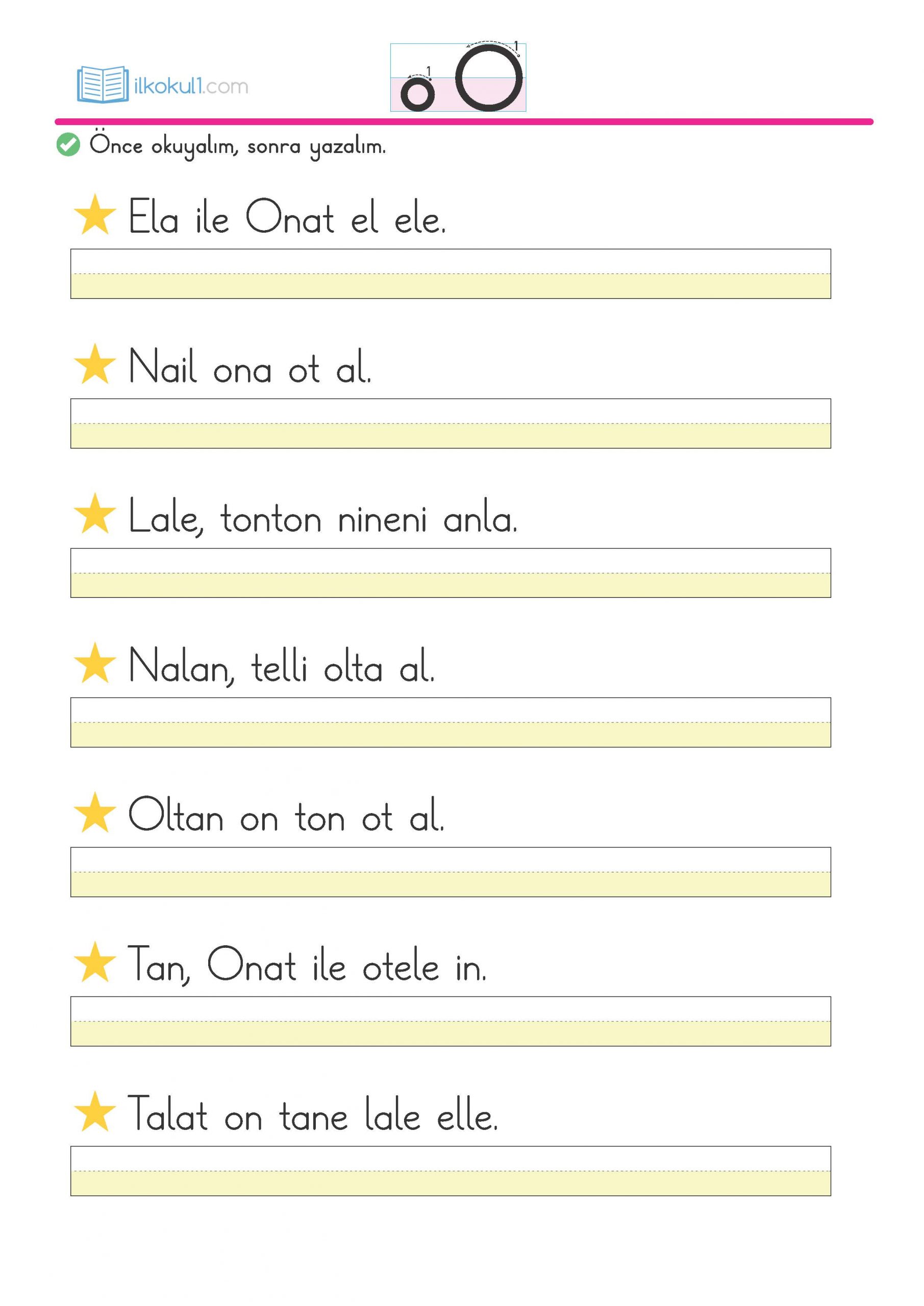 - “not”, “ton”, “otel” gibi kelimeleri okuyup yazalım.
