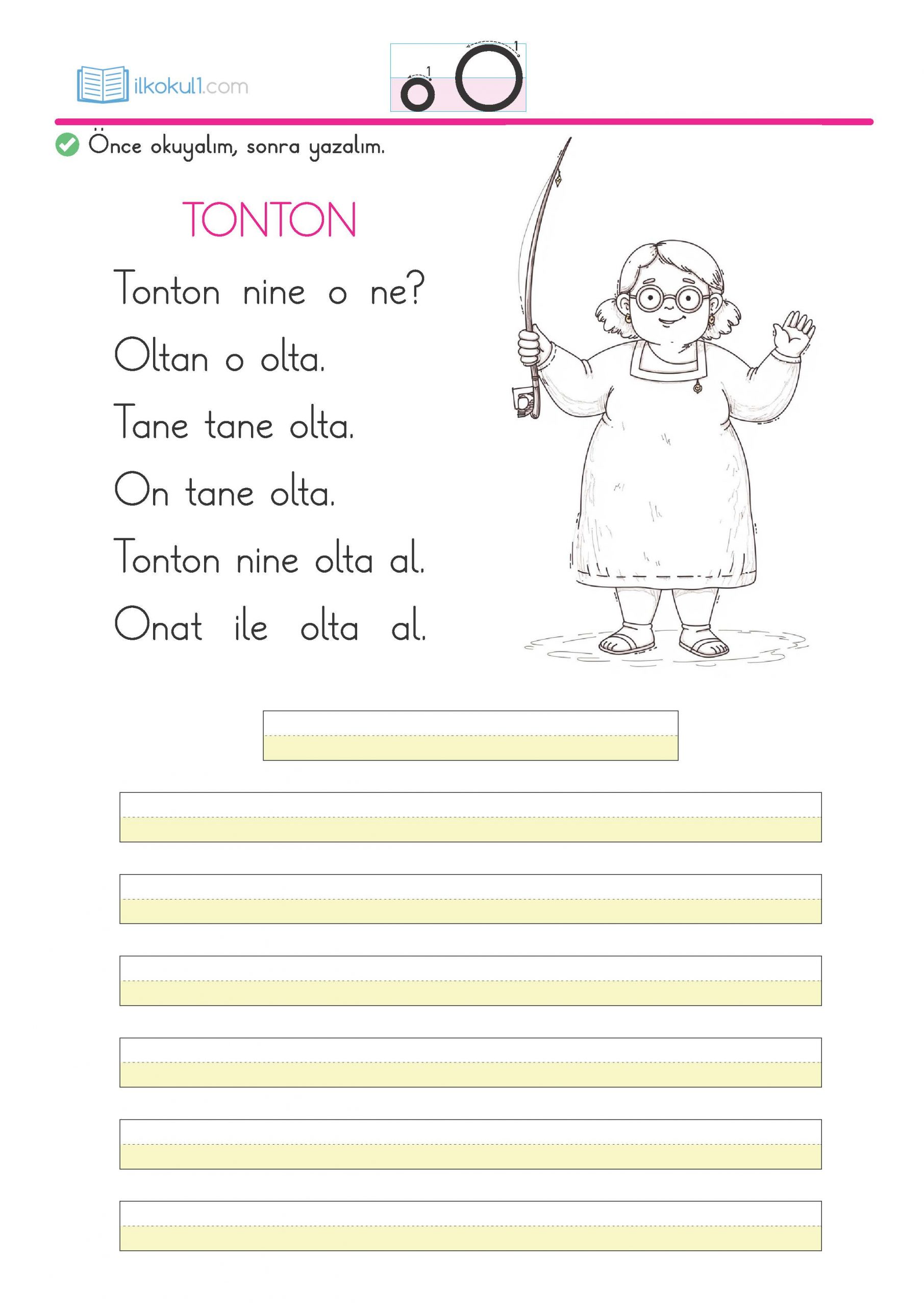 - “Tonton” ve “Alo” temalı kısa metinleri okuyalım ve yazalım: