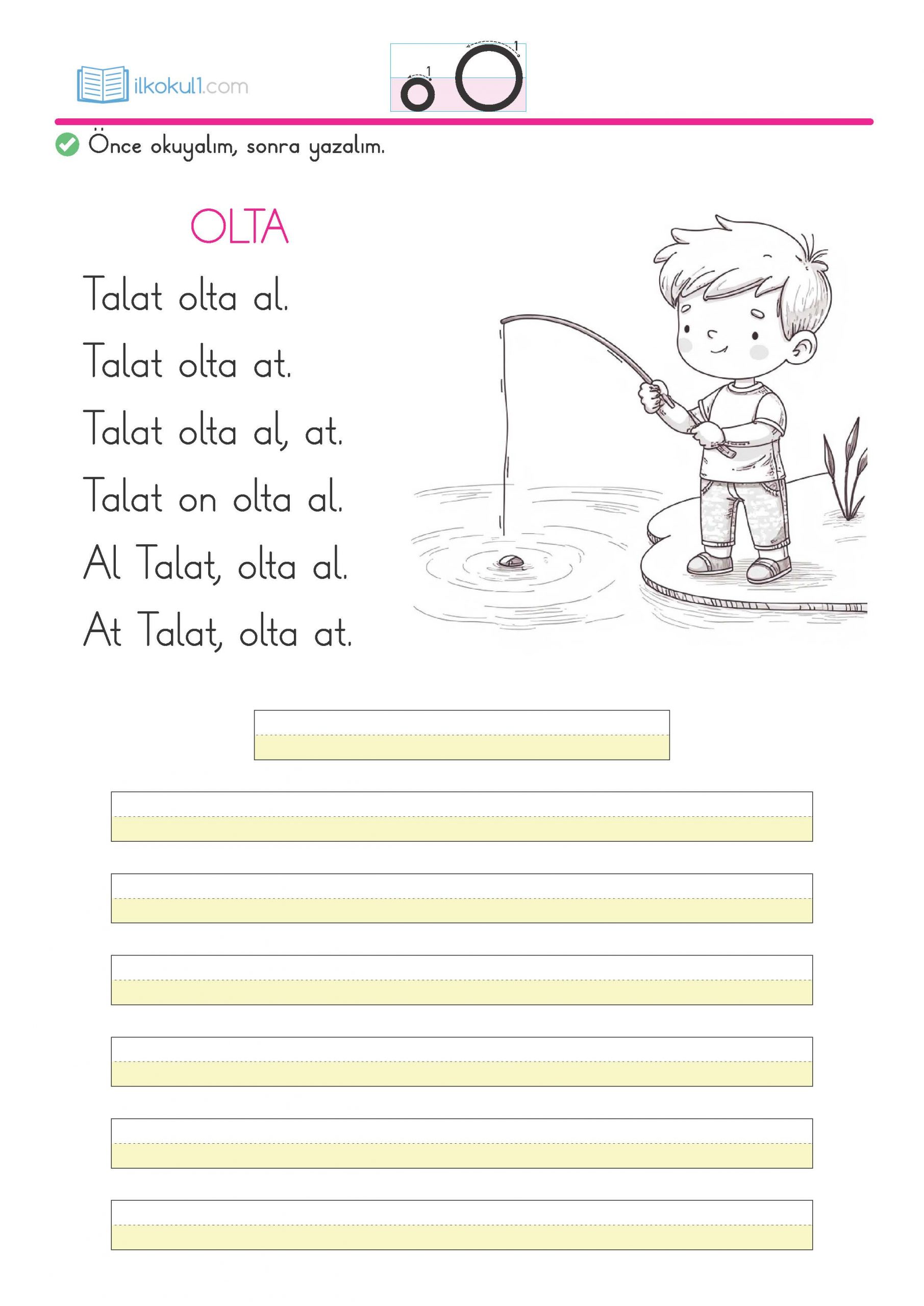 - “Olta” temalı kısa metni okuyup yazalım
