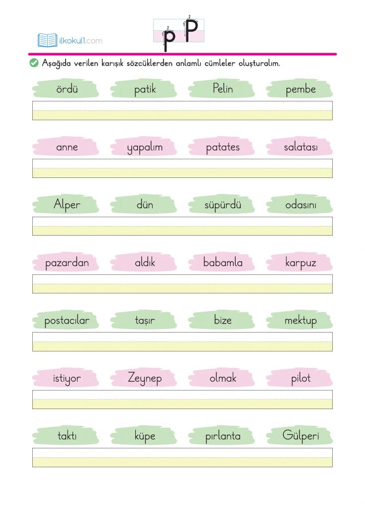- Adında “p” sesi olan varlıkları işaretleyelim.
