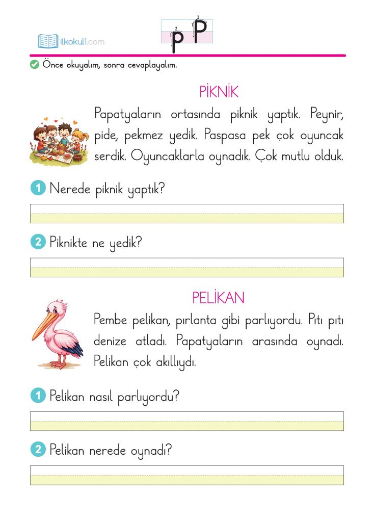 İşte “p” sesi için özgün etkinliklerimizin içerikleri: