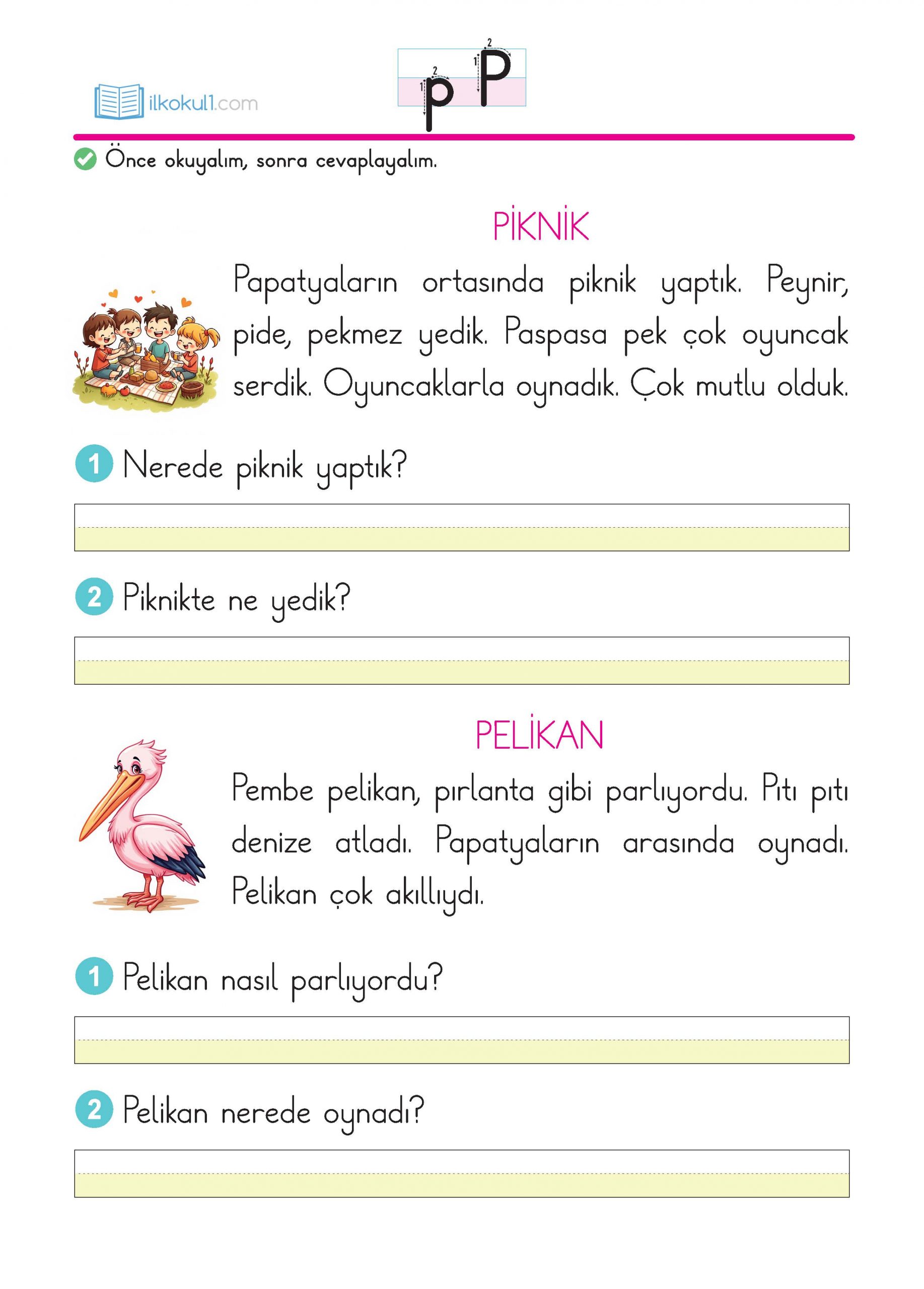 İşte “p” sesi için özgün etkinliklerimizin içerikleri:
