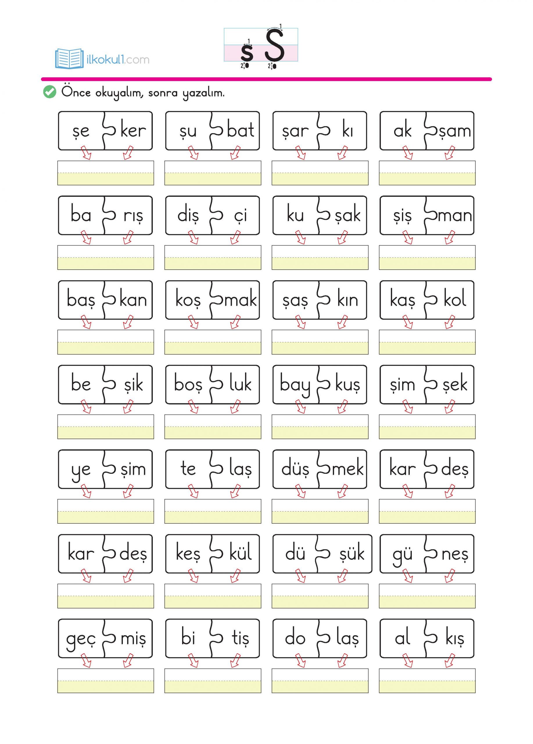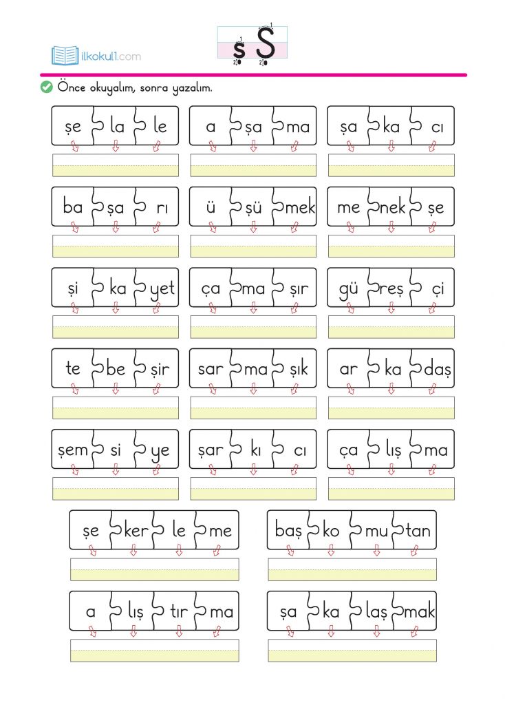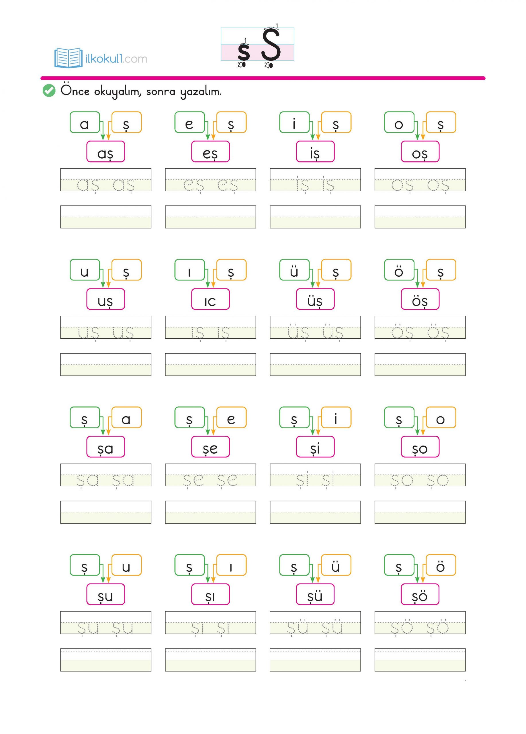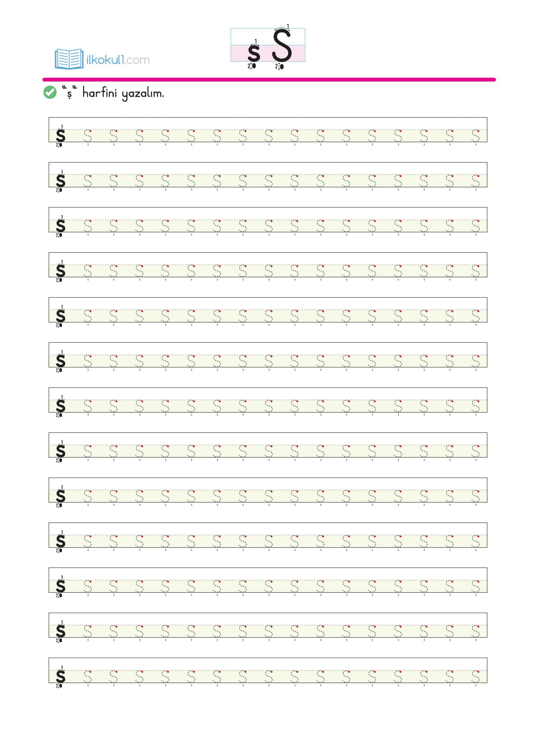 - Kalemle “ş” harflerini ok yönünde içinden çizelim.