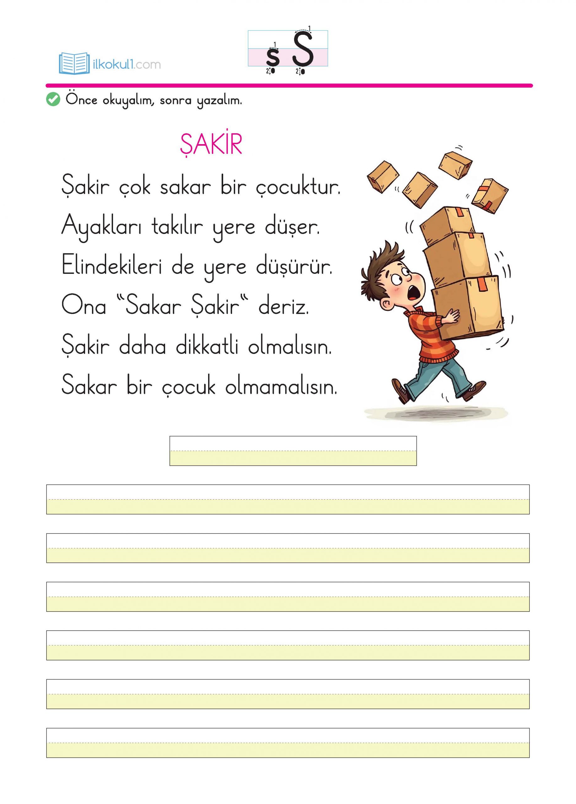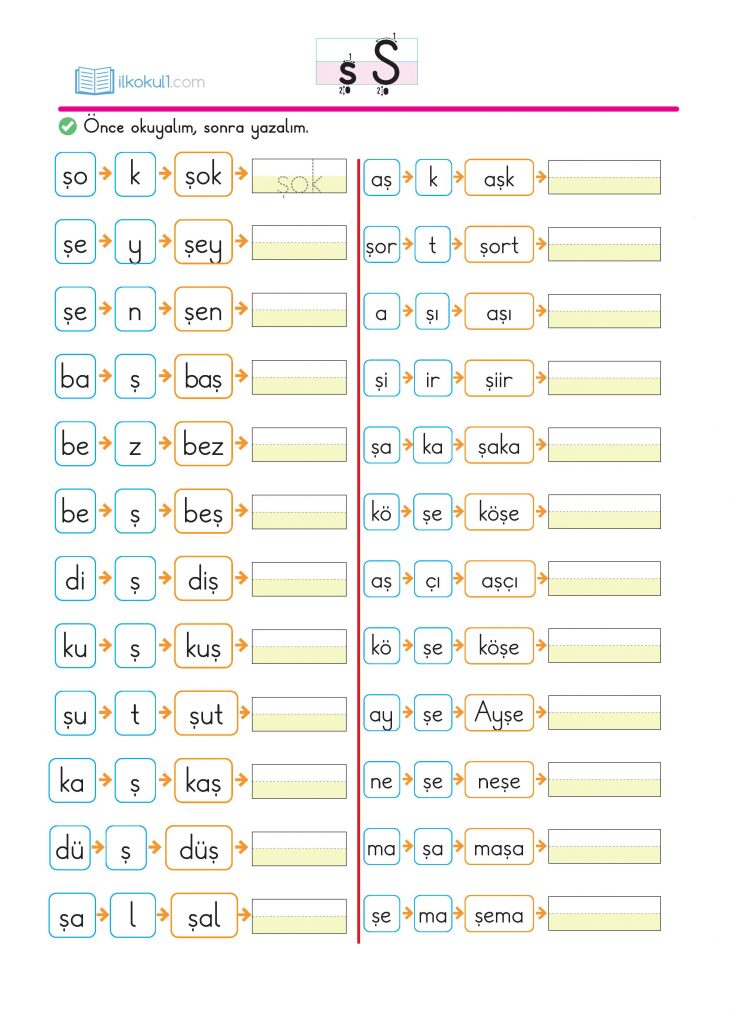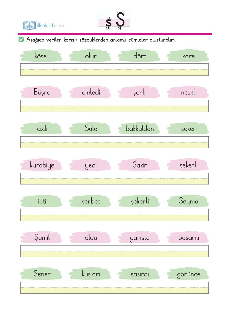 - Aşağıdaki satır dizgelerine “ş” harfini yazalım.