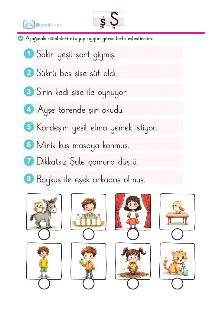 - Adının başında “Ş, ş” sesi olan varlıkları işaretleyelim.