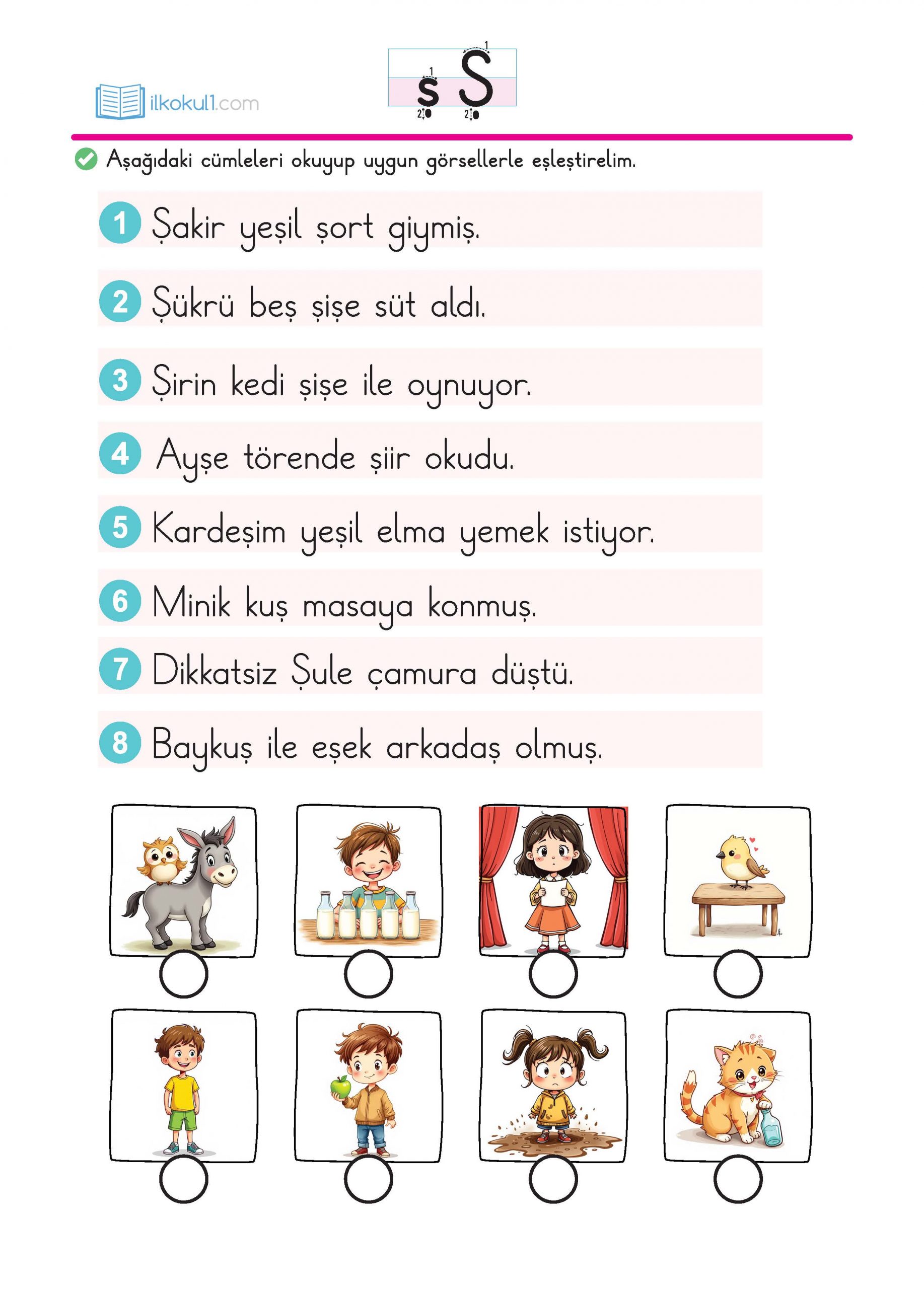 - Cümleleri okuyup görsellerle eşleştirelim: