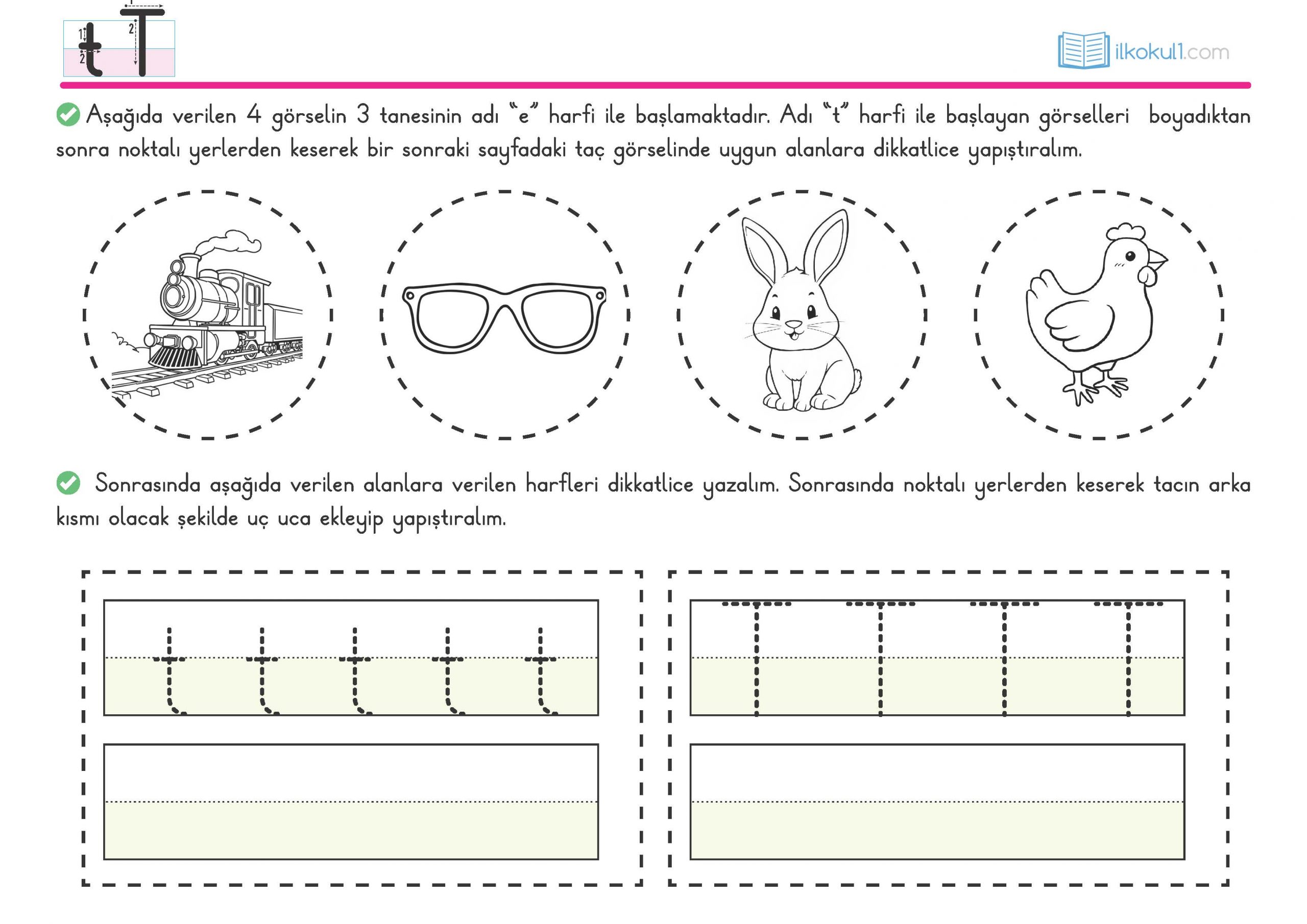 - Adı “t” harfi ile başlayan görselleri boyayıp keselim.