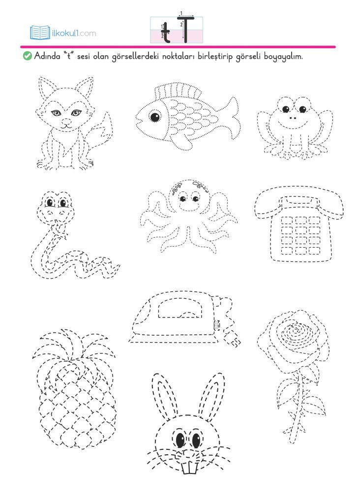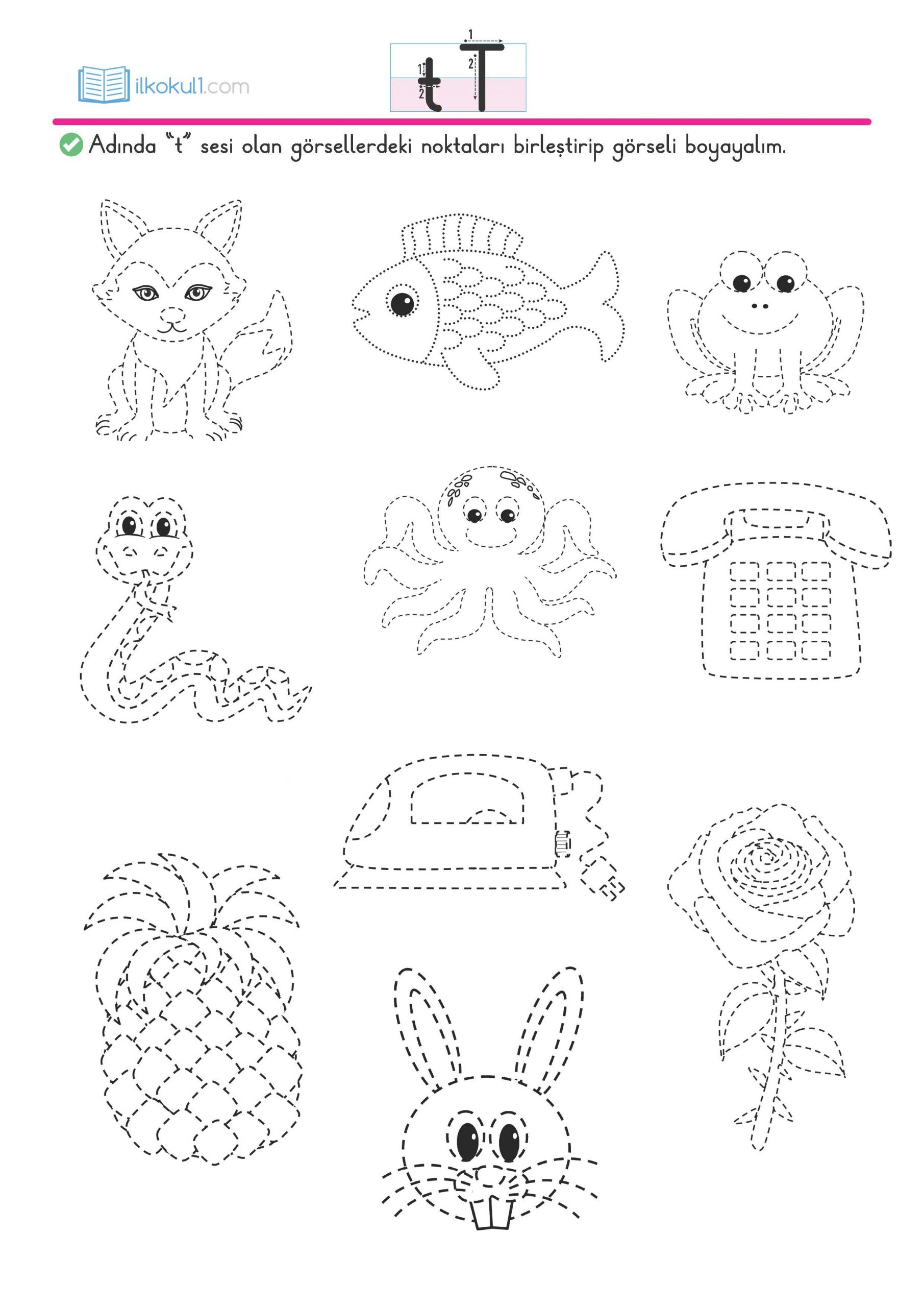 - Adında “t” sesi olan görsellerdeki noktaları birleştirip görseli boyayalım.