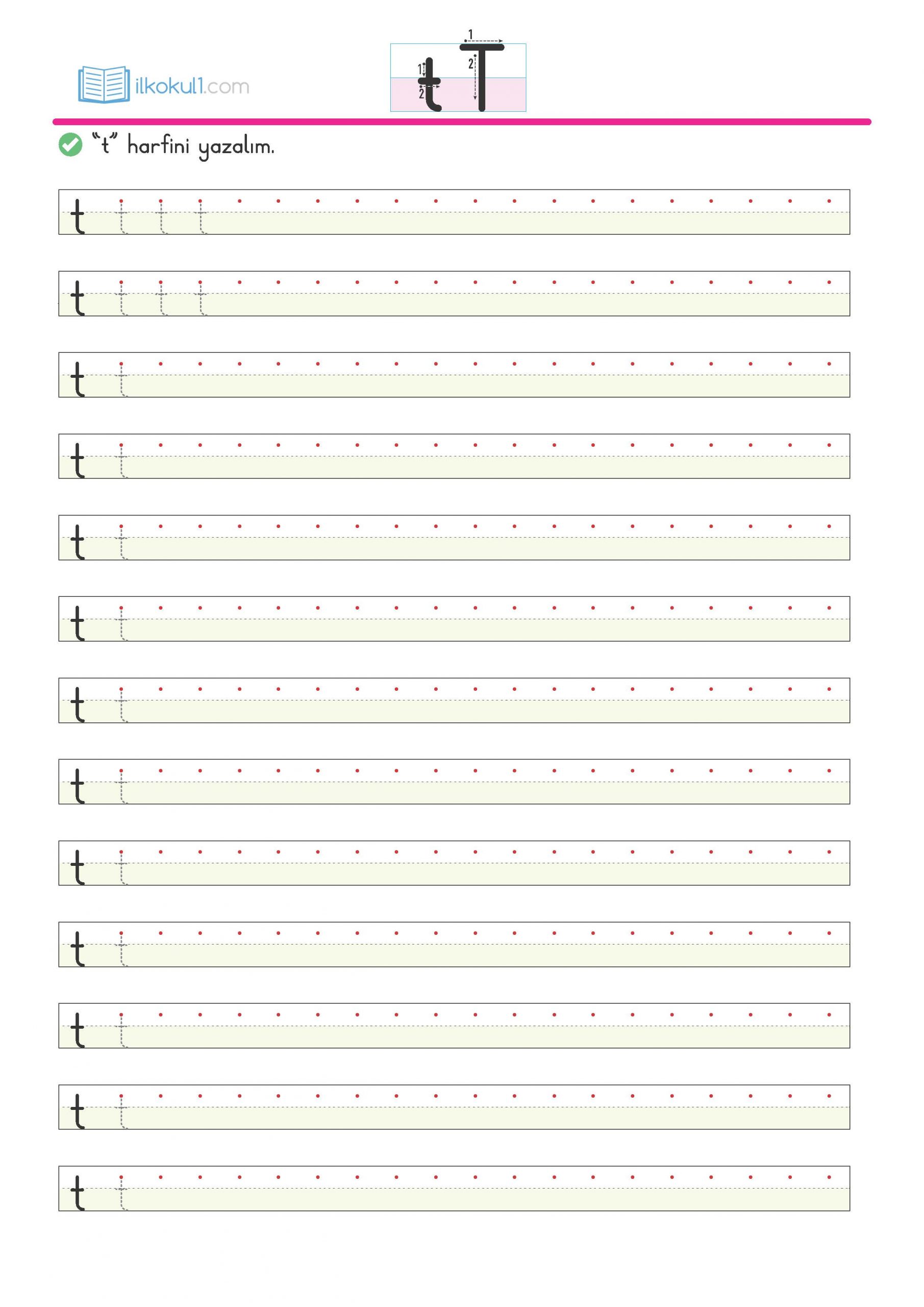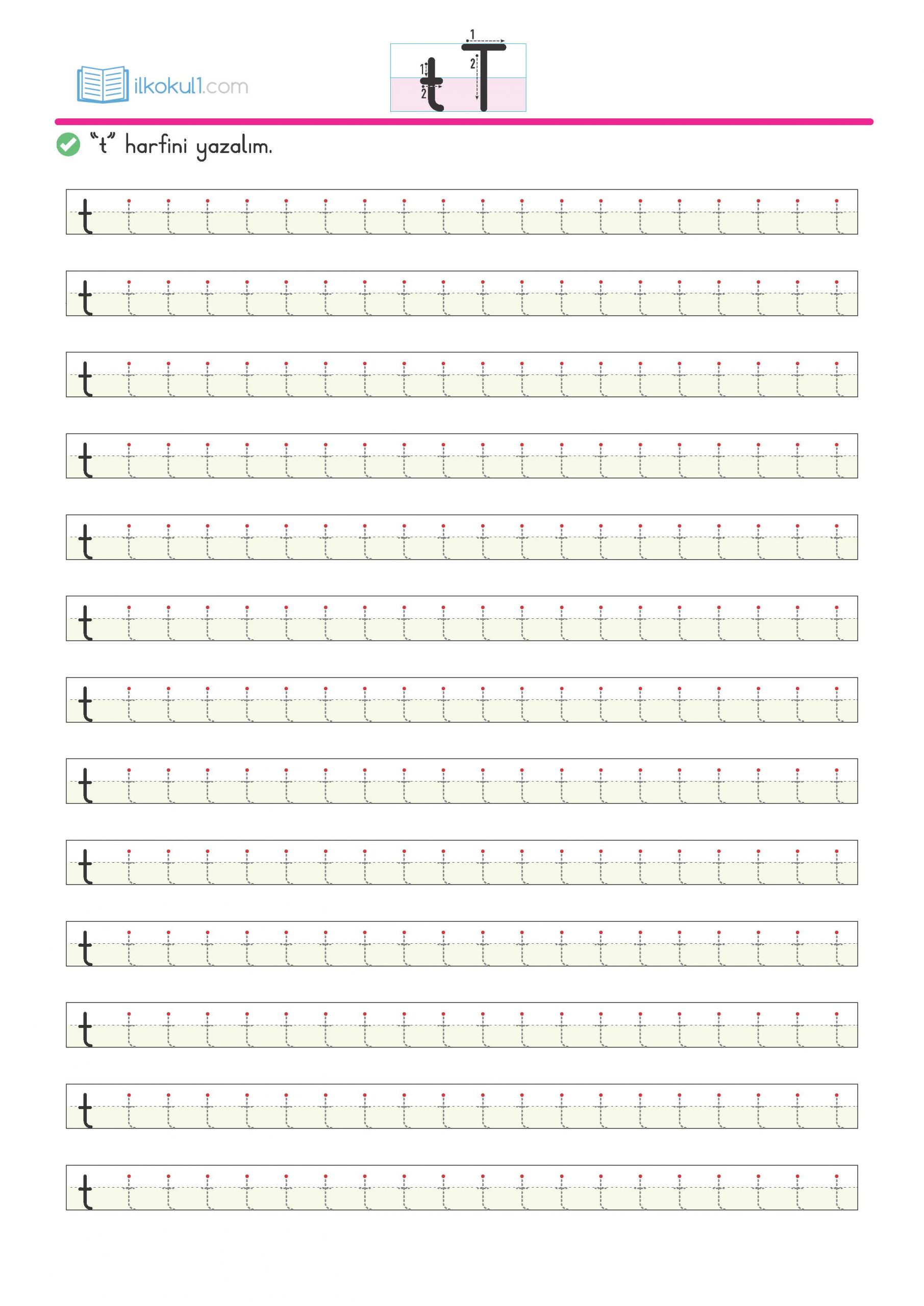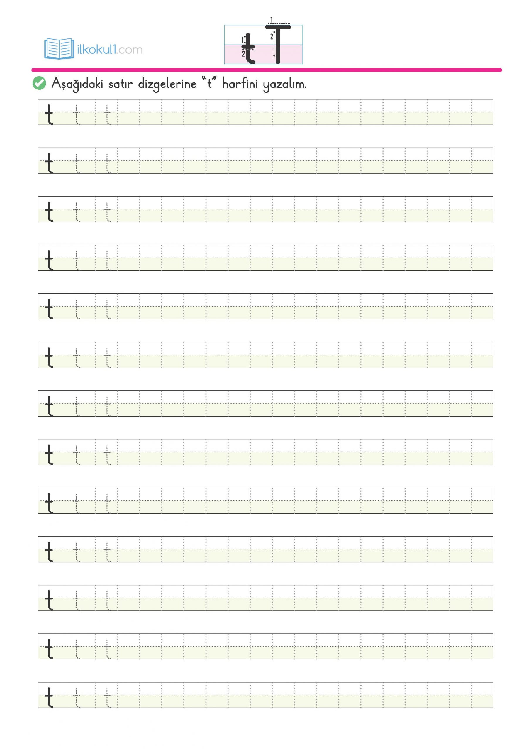 - Kalemle “t” harflerini ok yönünde içinden çizelim.