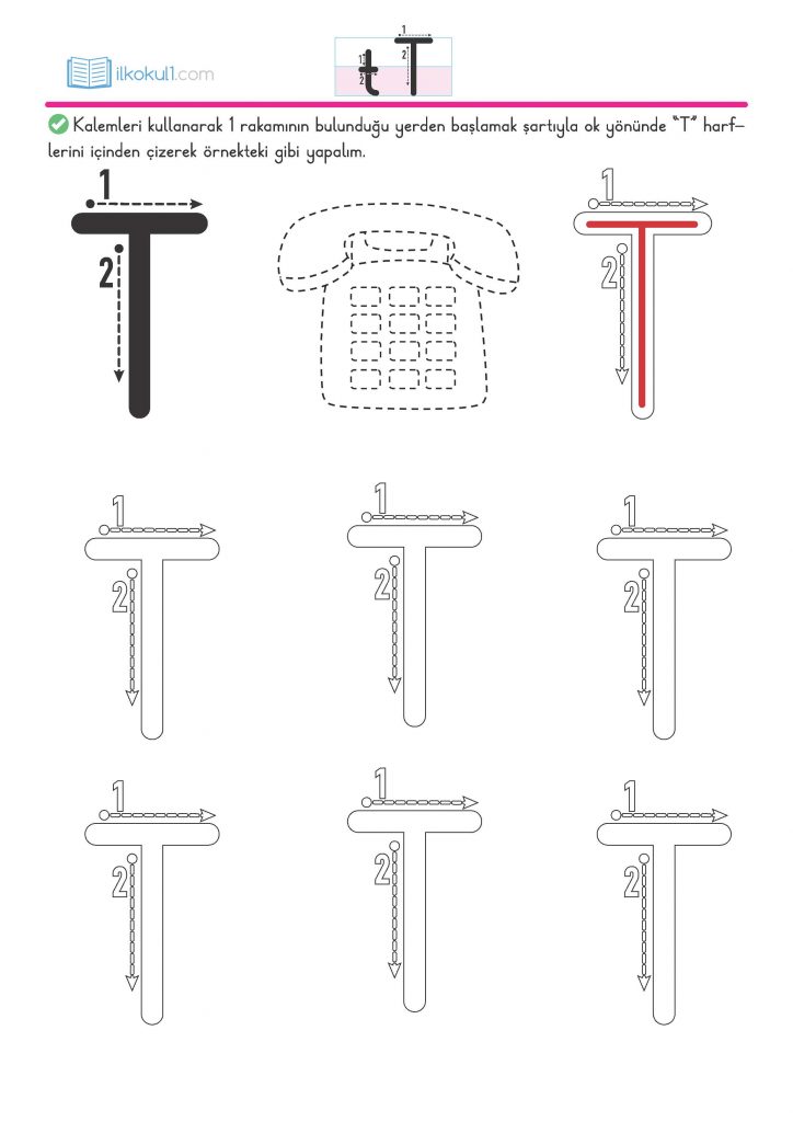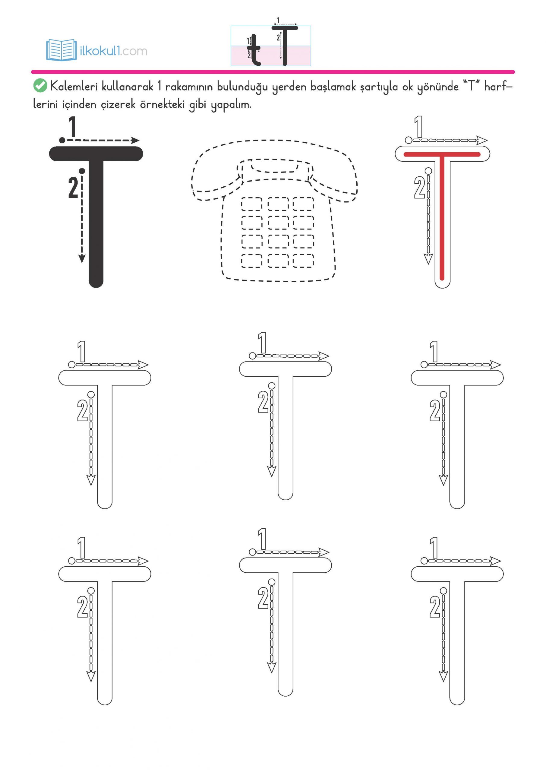 - Kalemle “T” harflerini ok yönünde içinden çizelim.