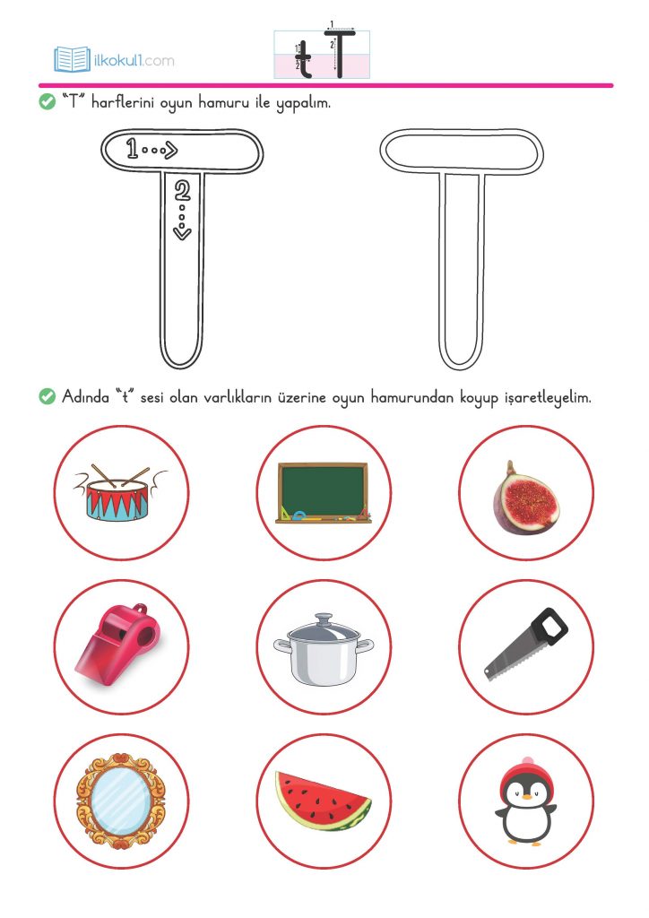 - Adında “T” sesi olan varlıkların üzerine oyun hamurundan koyup işaretleyelim.