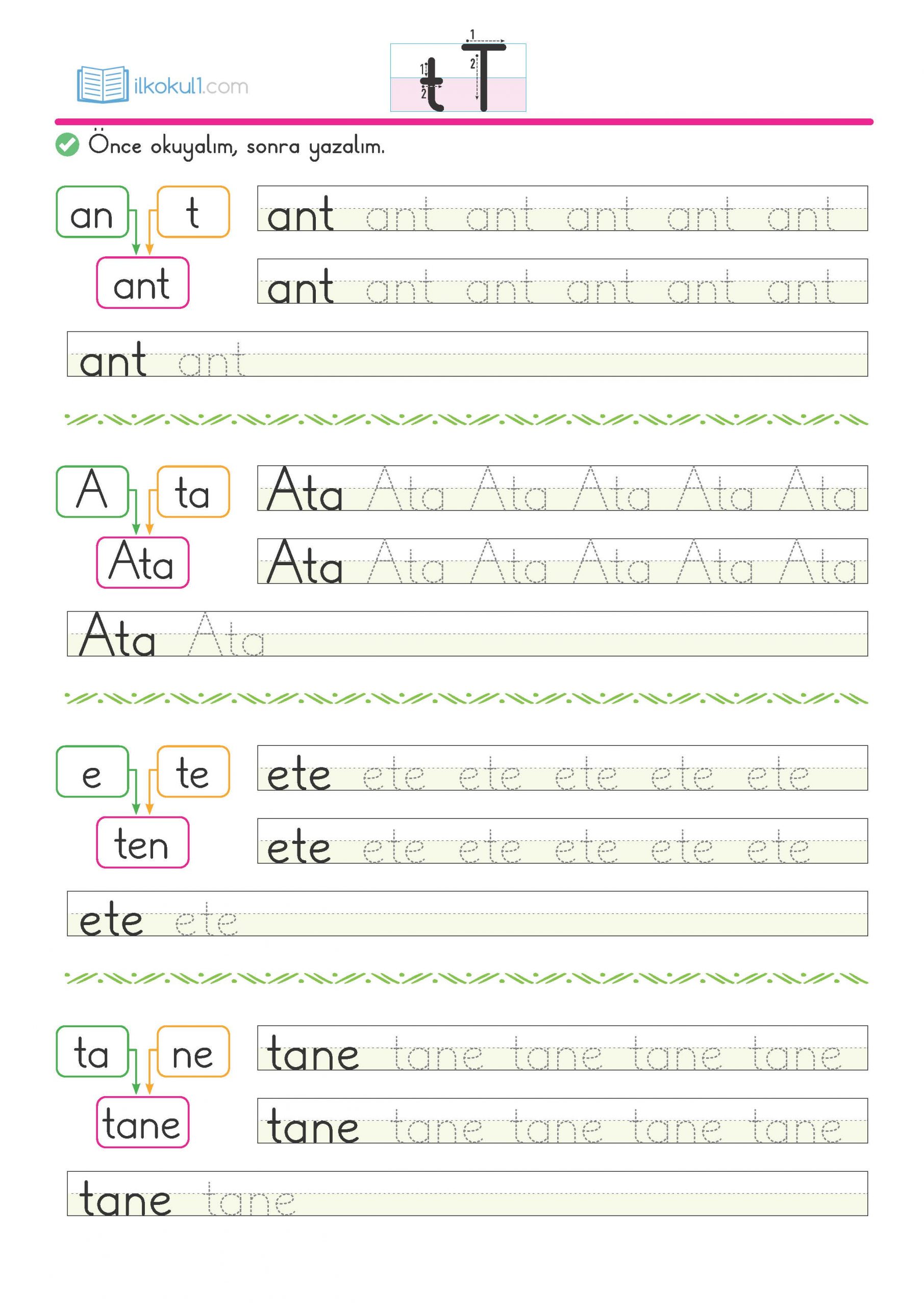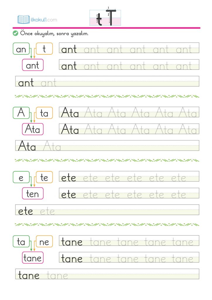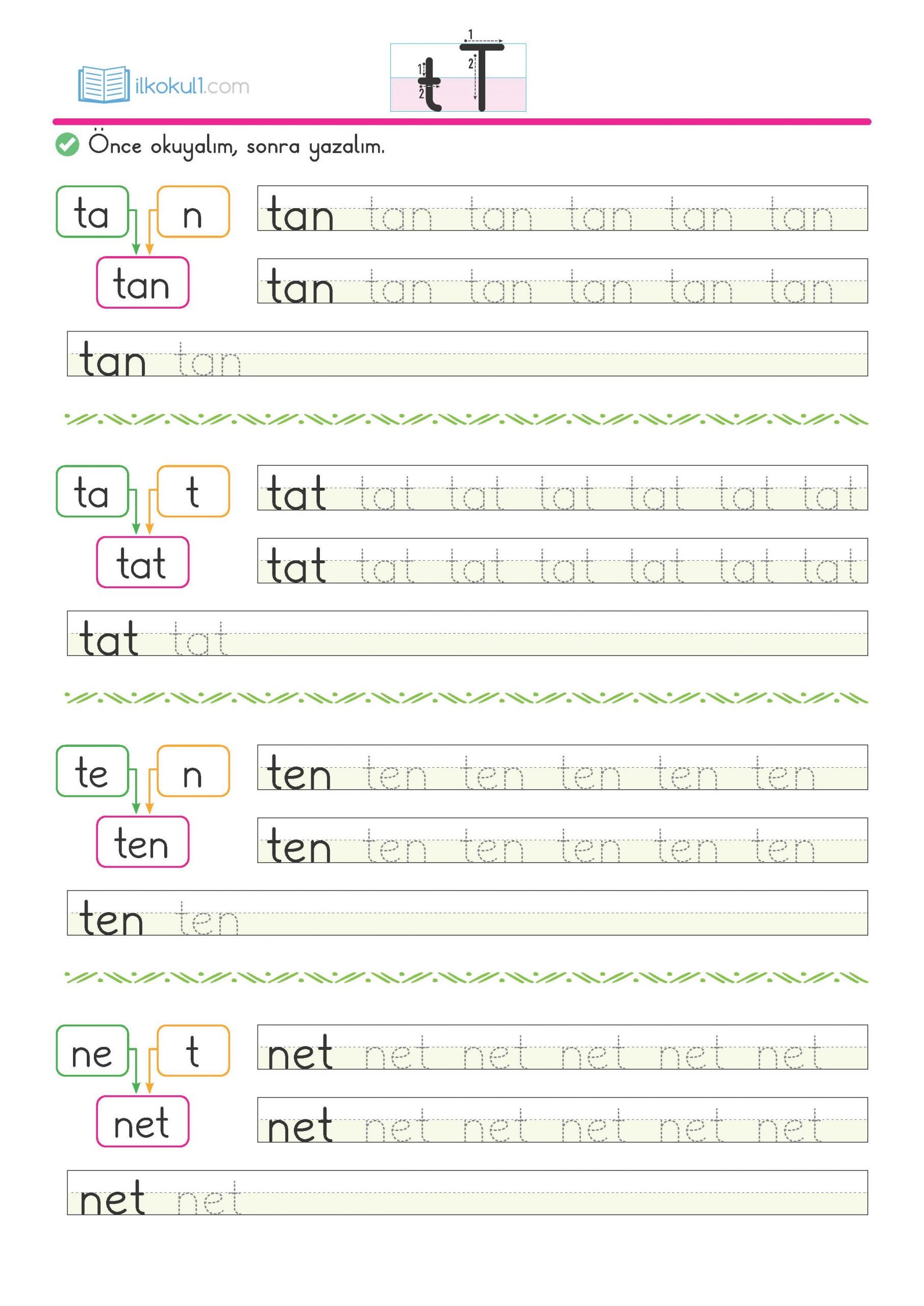 - “tan” ve “tat” gibi kelimeleri okuyup yazalım.