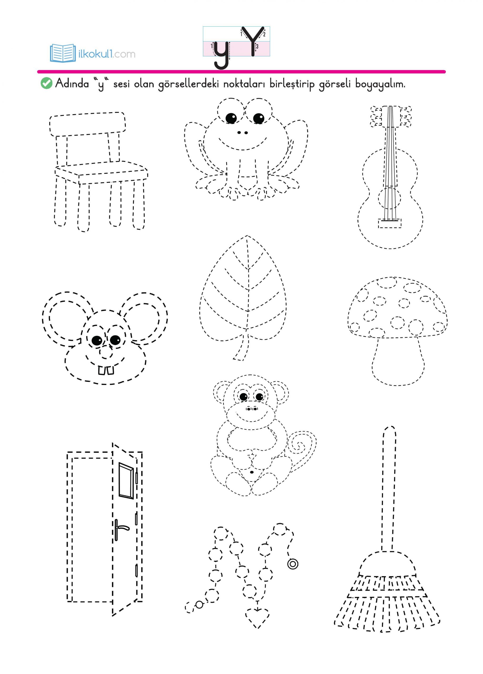 • Adında “y” sesi olan görsellerdeki noktaları birleştirip görseli boyayalım.