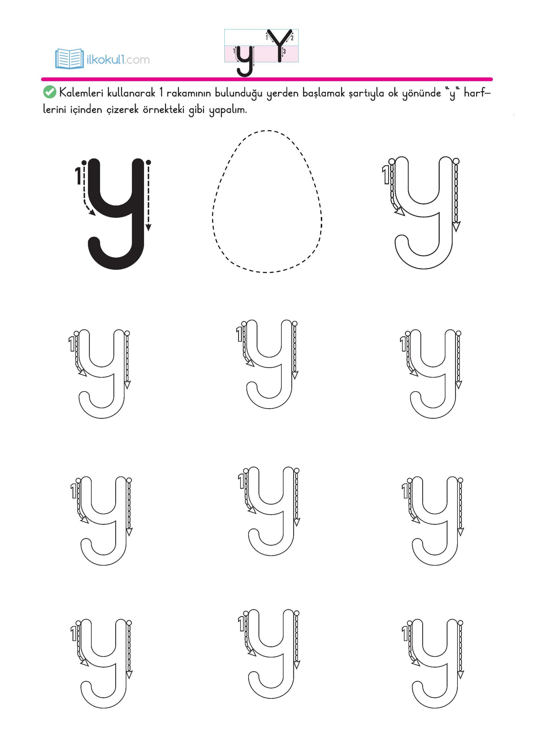 • Kalemle “y” harflerini ok yönünde içinden çizelim.