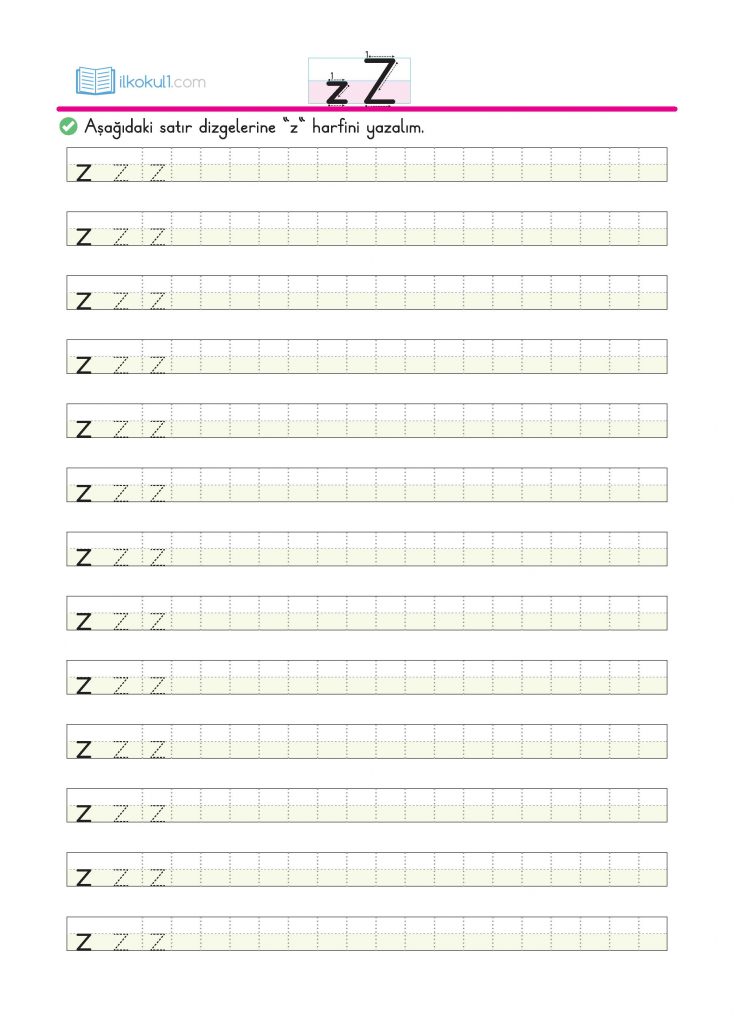 - Aşağıdaki satır dizgelerine “z” harfini yazalım.