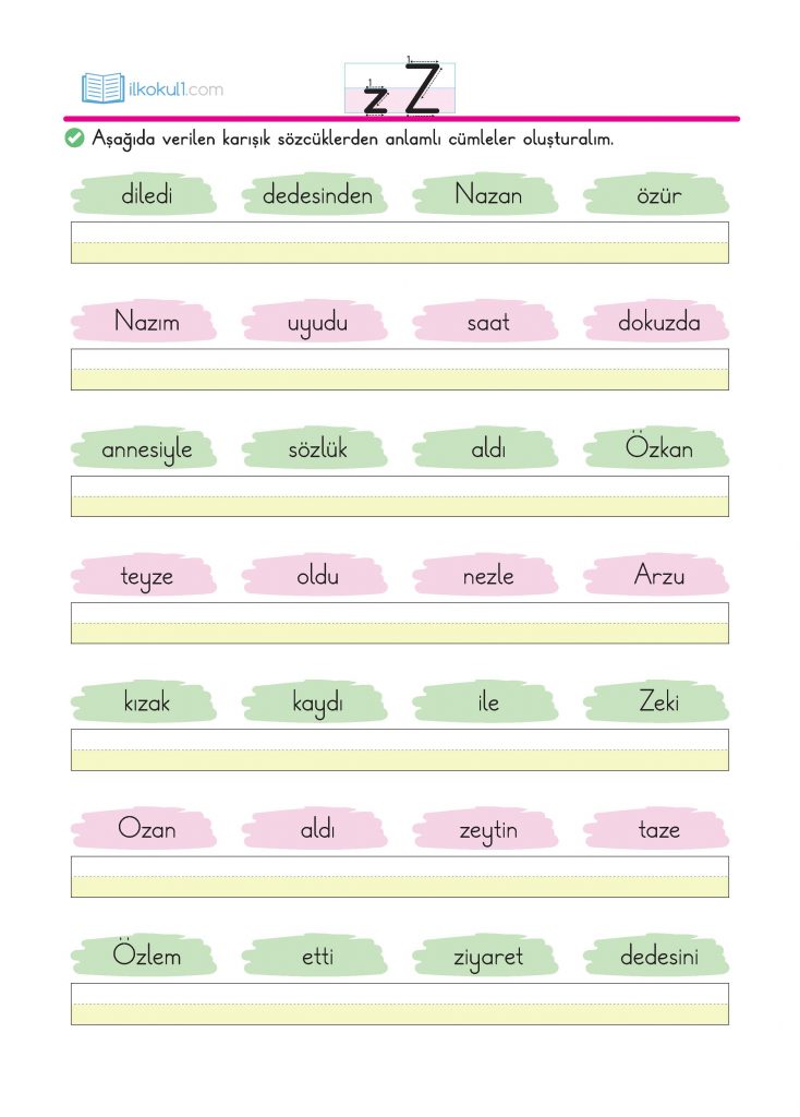 - Adında “z” sesi olan varlıkları işaretleyelim.