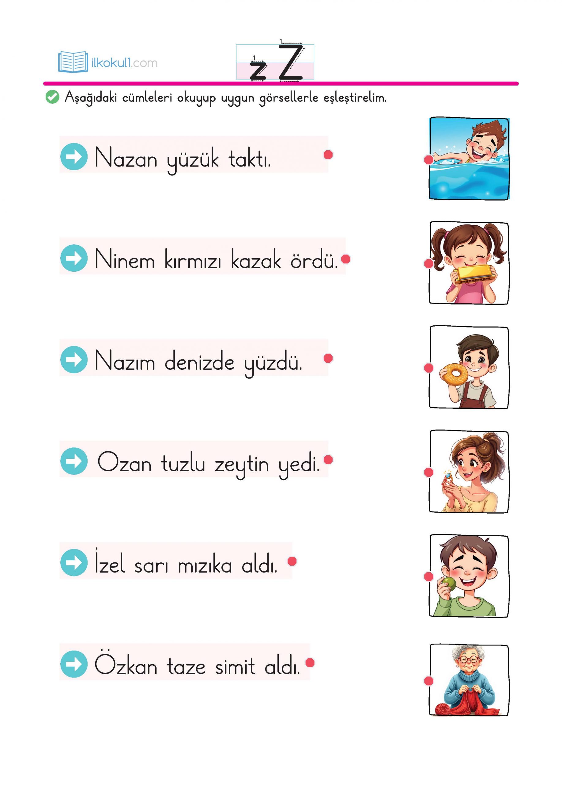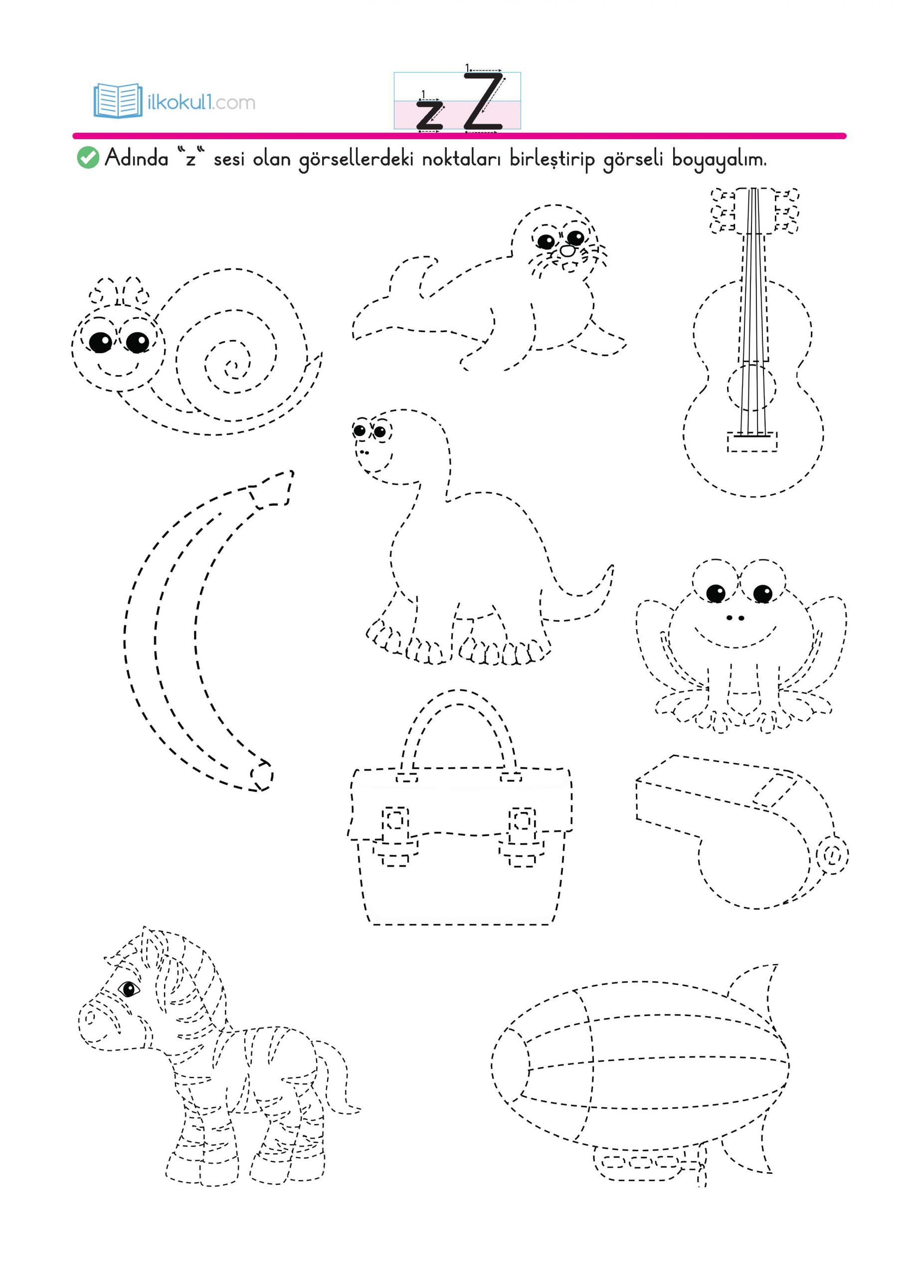 - Adında “z” sesi olan görsellerdeki noktaları birleştirip görseli boyayalım.