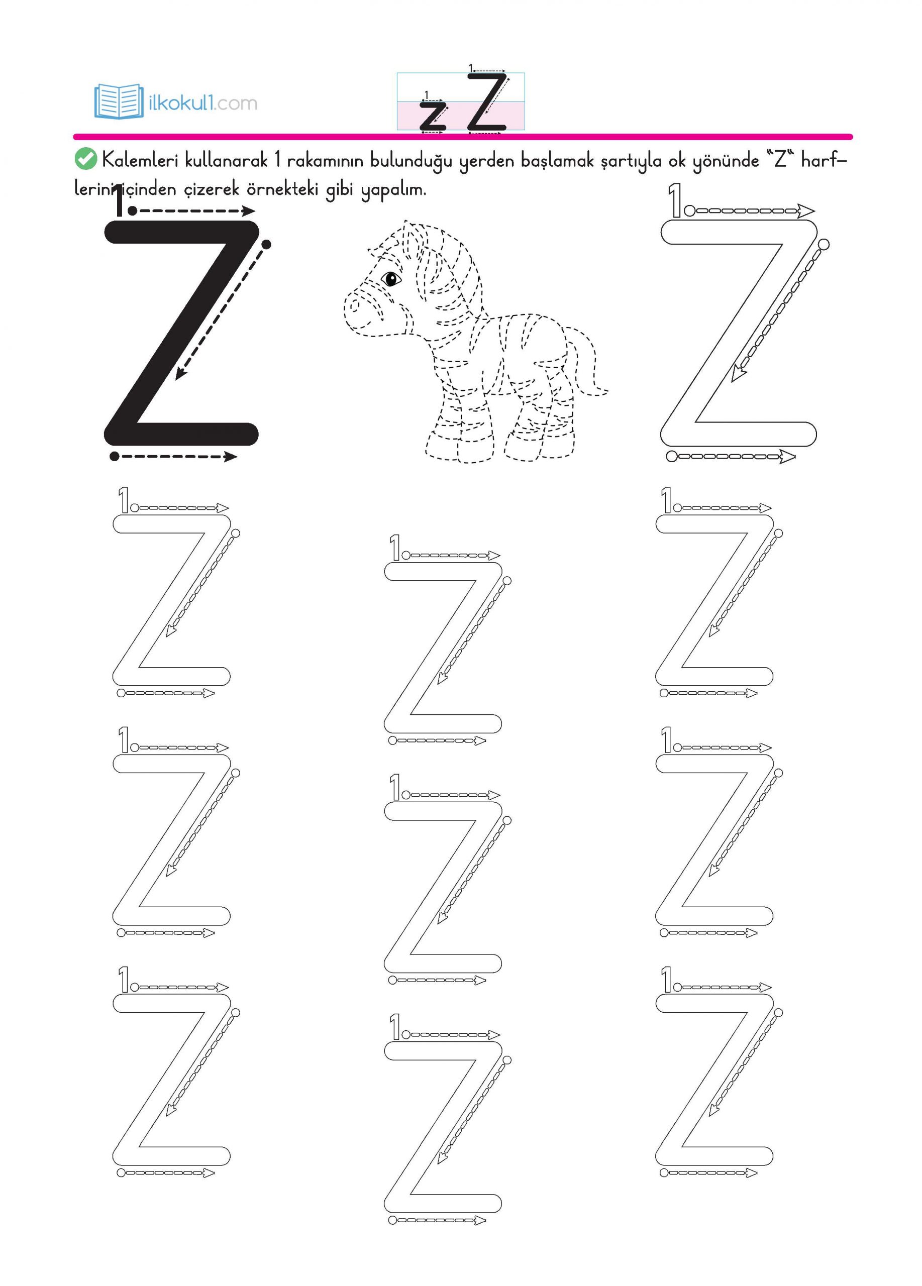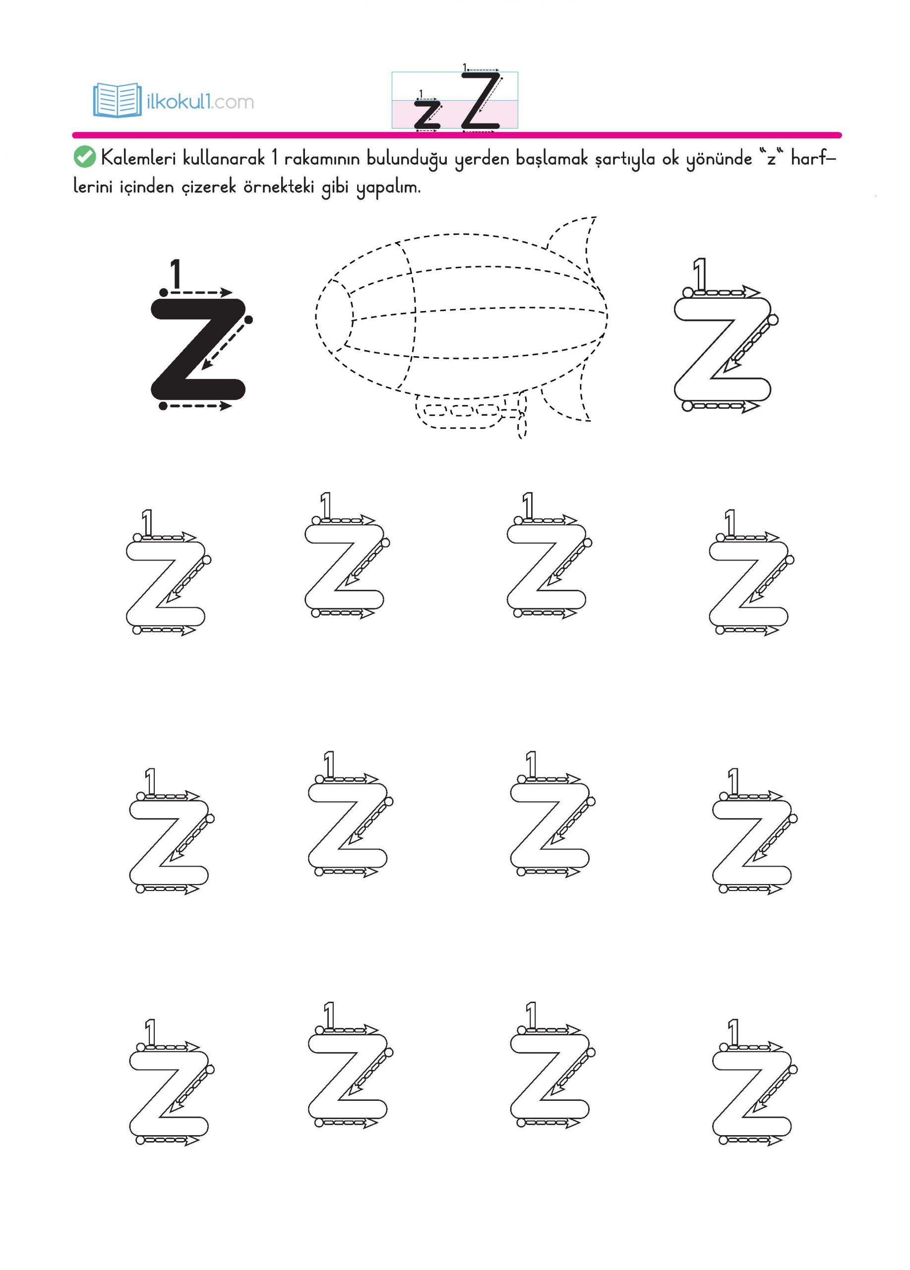 - Kalemle “z” harflerini ok yönünde içinden çizelim.