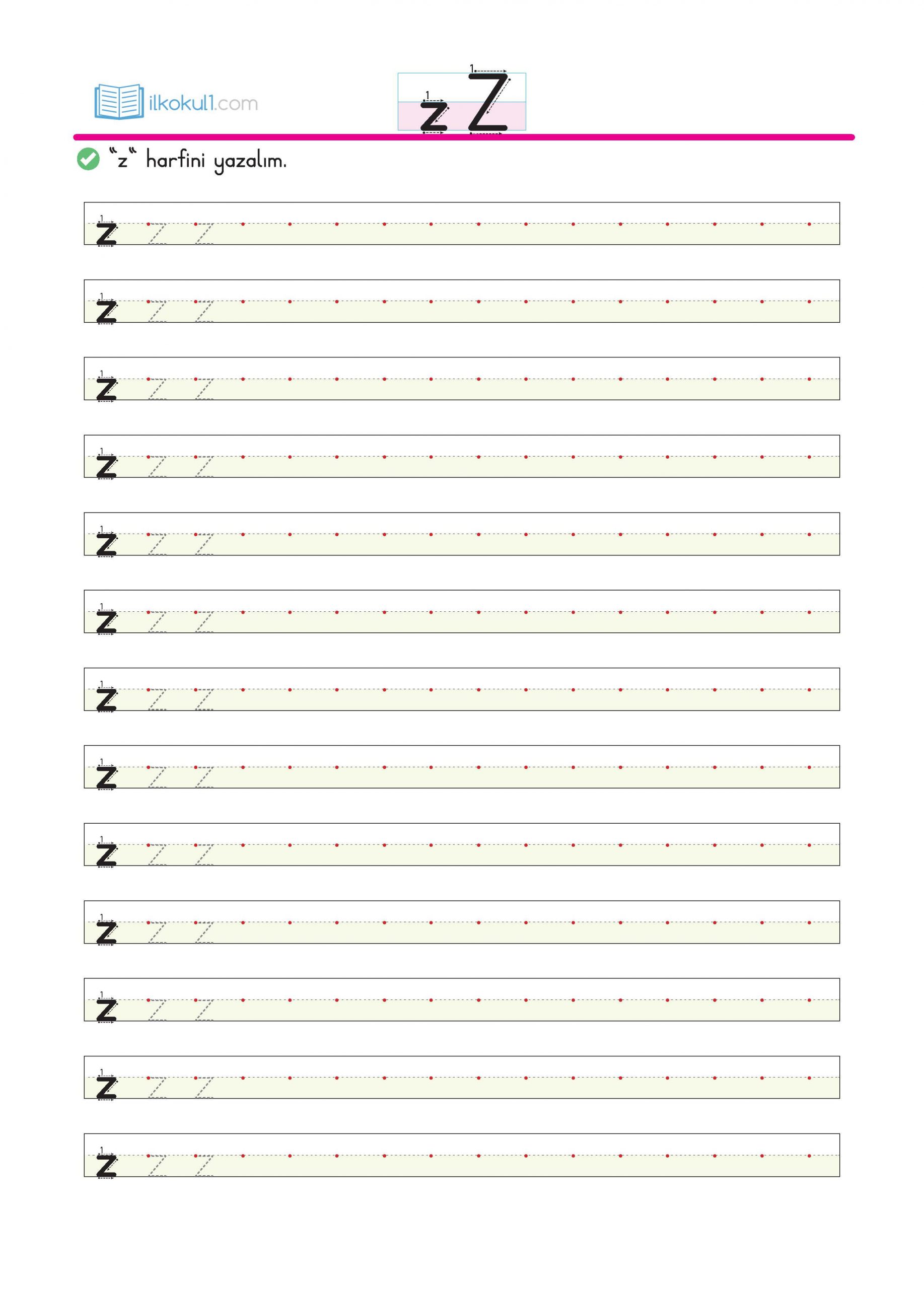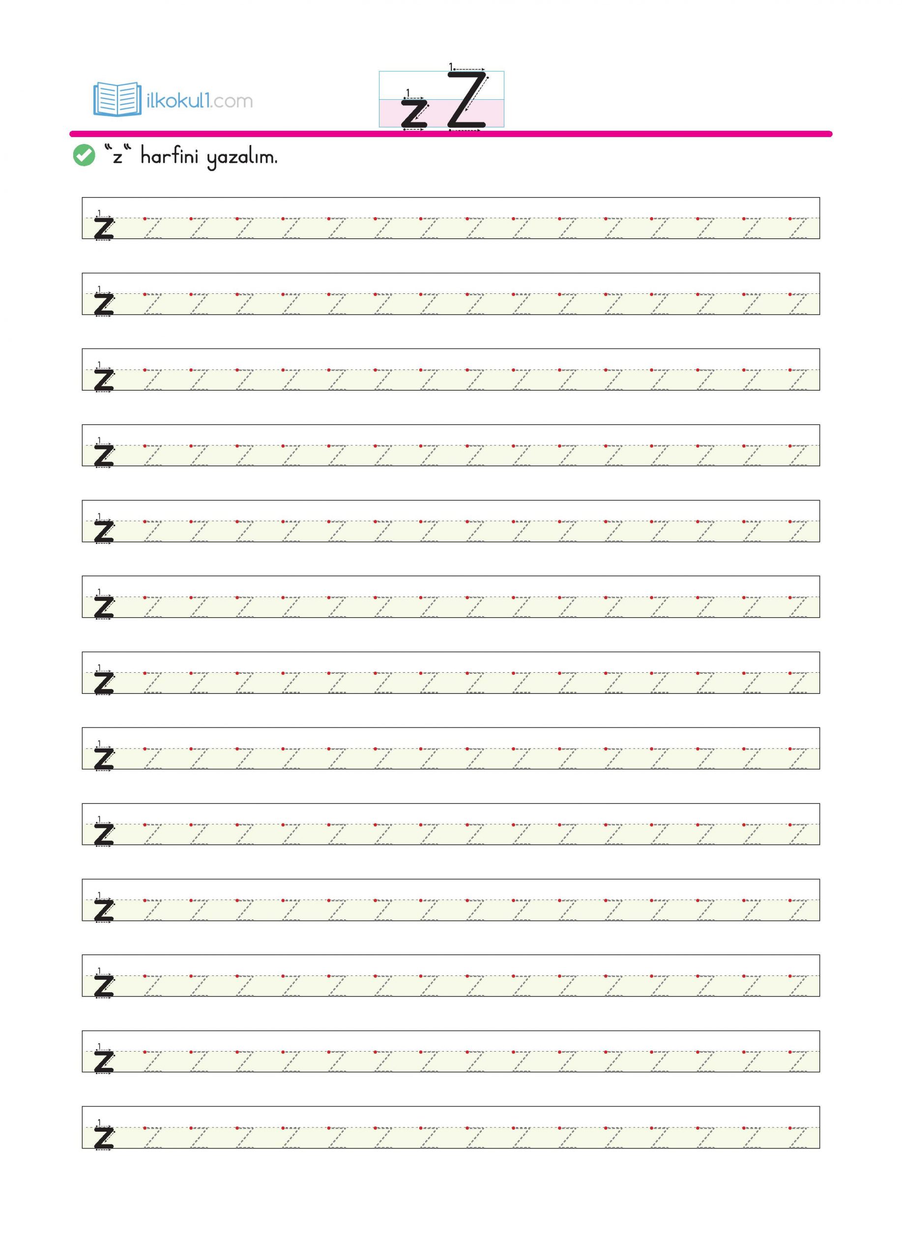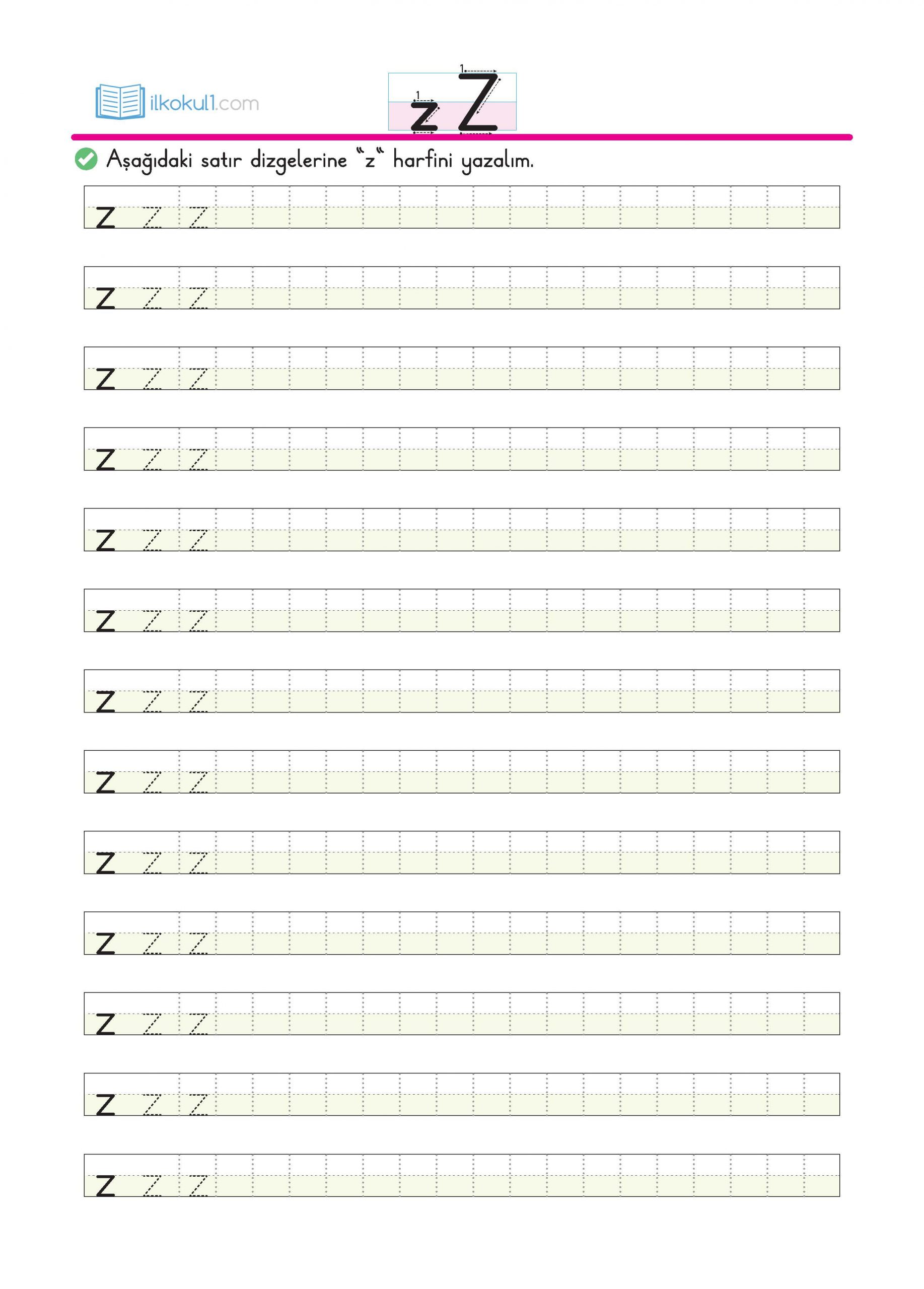 - Aşağıdaki satır dizgelerine “z” harfini yazalım.