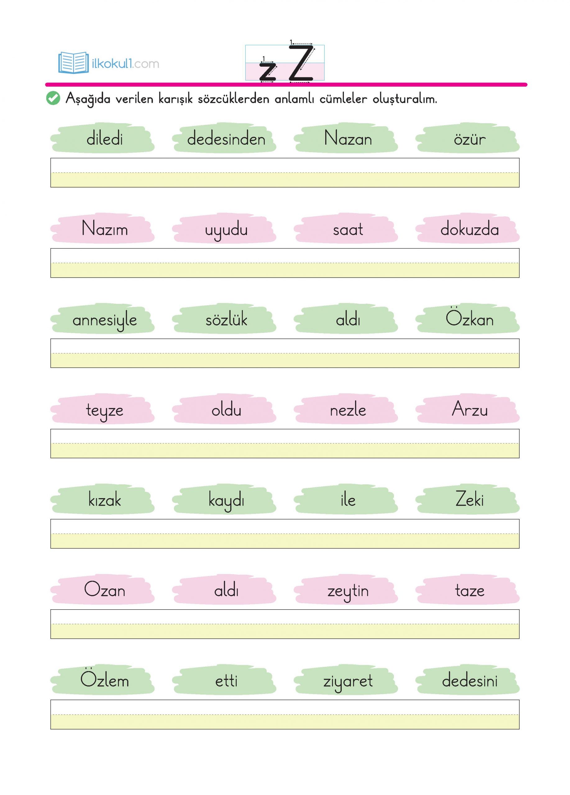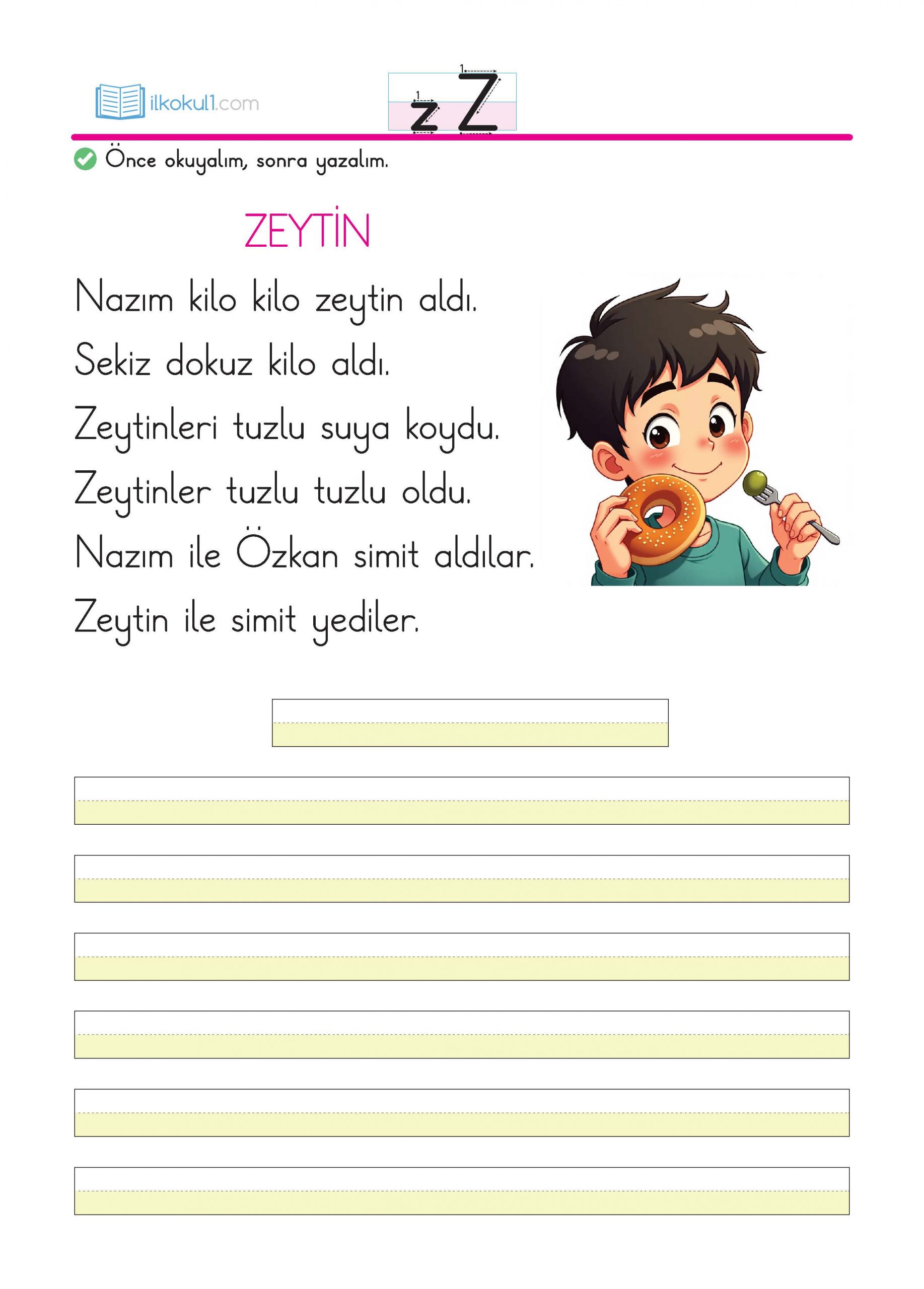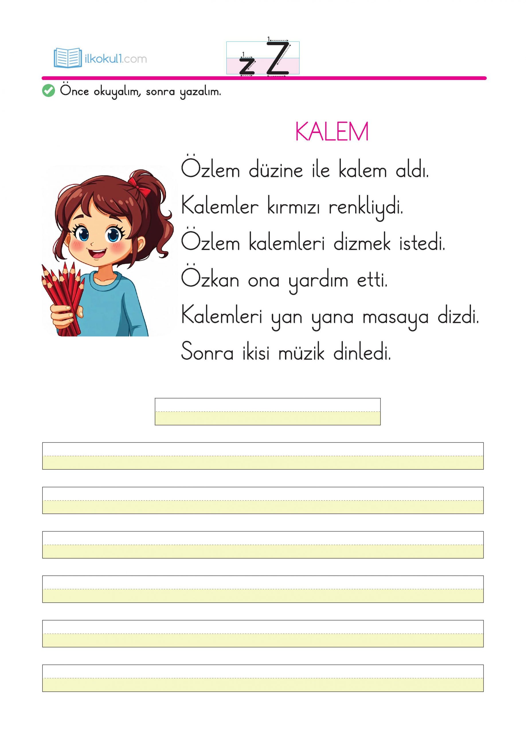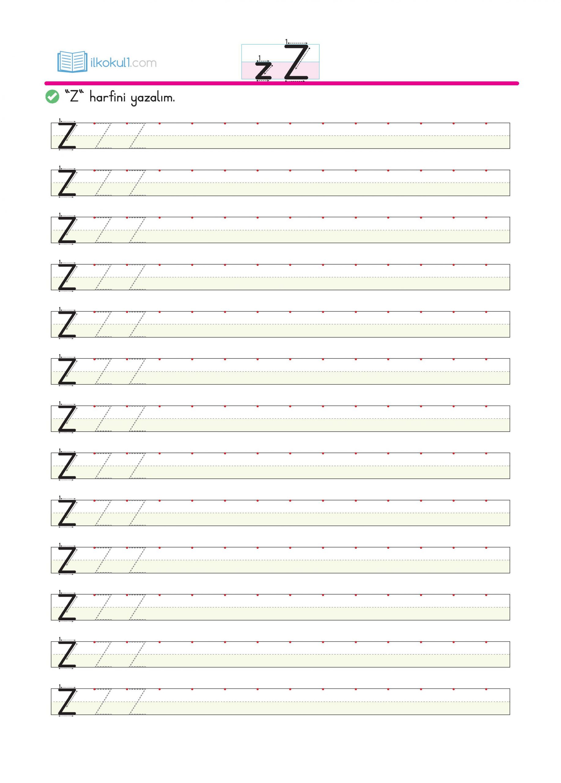 - Aşağıdaki satır dizgelerine “z” harfini yazalım.
