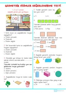 3. Sınıf Geometrik Cisimler Değerlendirme Testi aşağıdaki küçük resme tıklayarak bilgisayarınıza indirebilirsiniz.