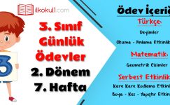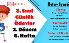 3. Sınıf 1. Dönem 11. Hafta Günlük Ödevlerimizin Konuları: