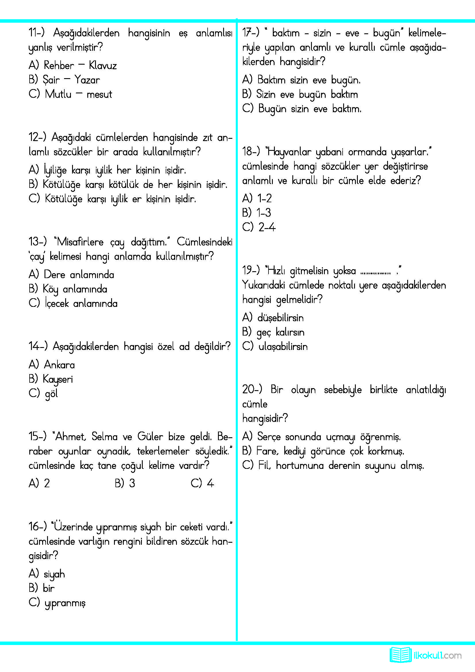3. SINIF TÜRKÇE 1. DÖNEM 15. HAFTA 2
