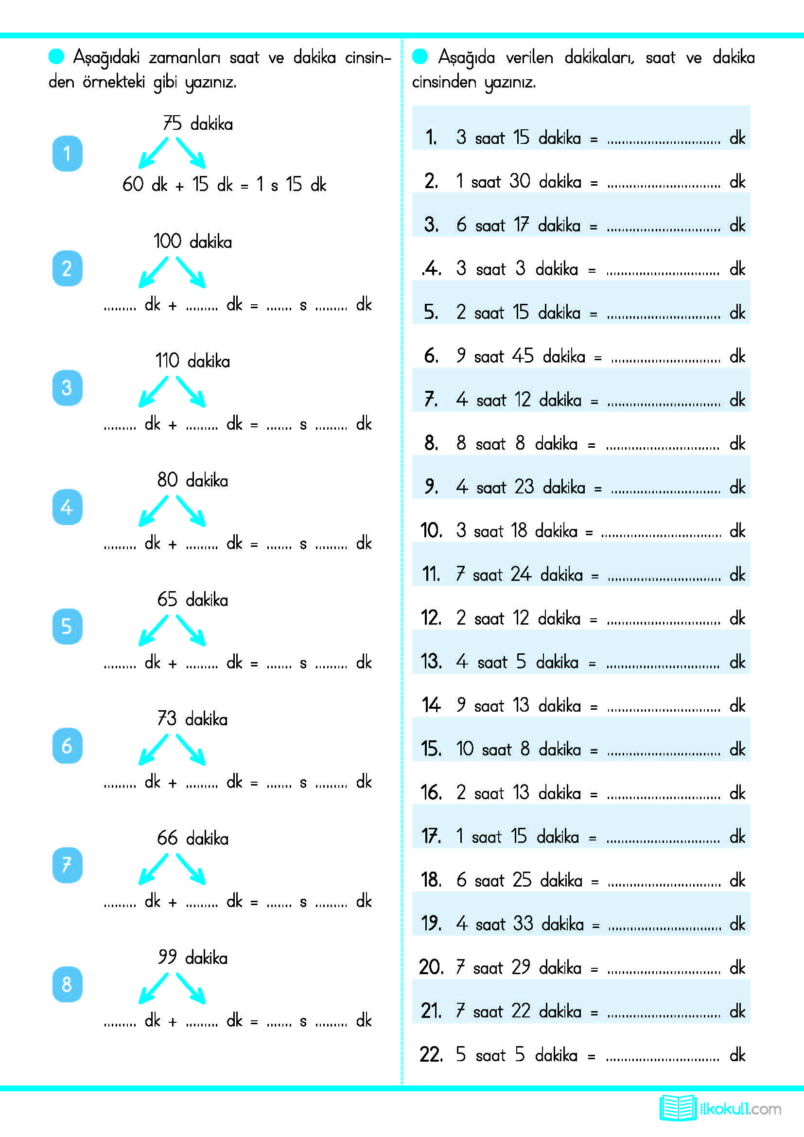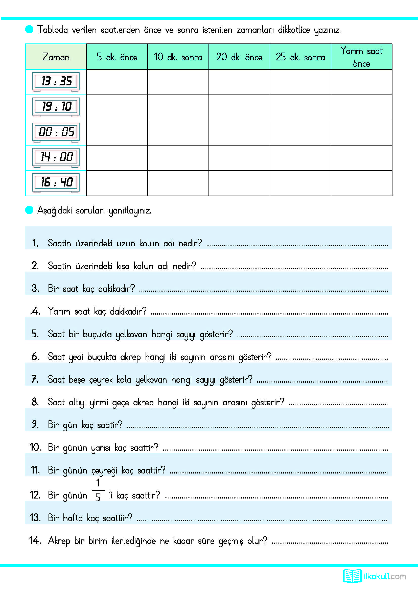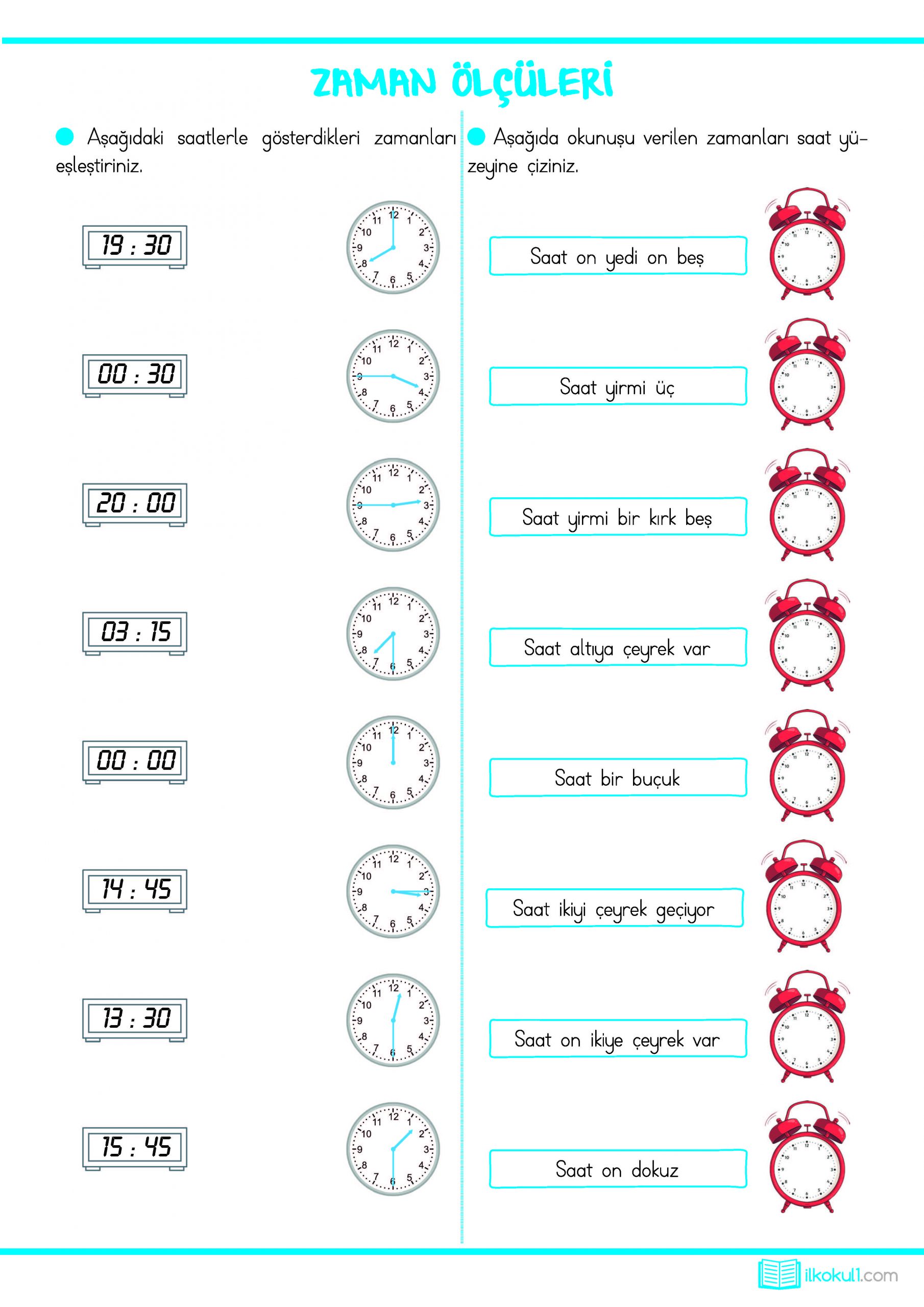 - 3. Sınıf Matematik Zaman Ölçüleri Etkinlikleri