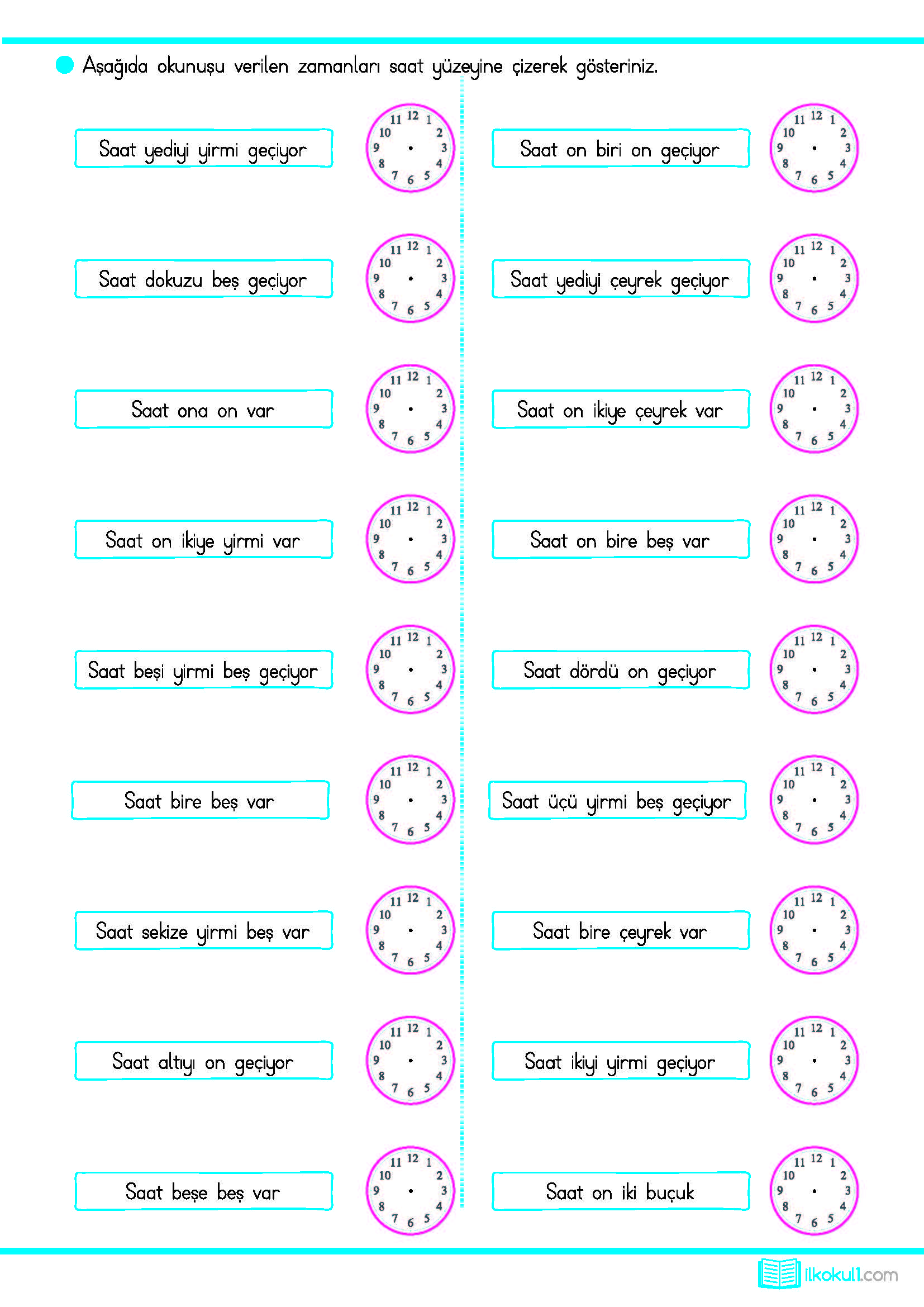 - 3. Sınıf Matematik Tam, Yarım ve Çeyrek Saatler Çalışmaları