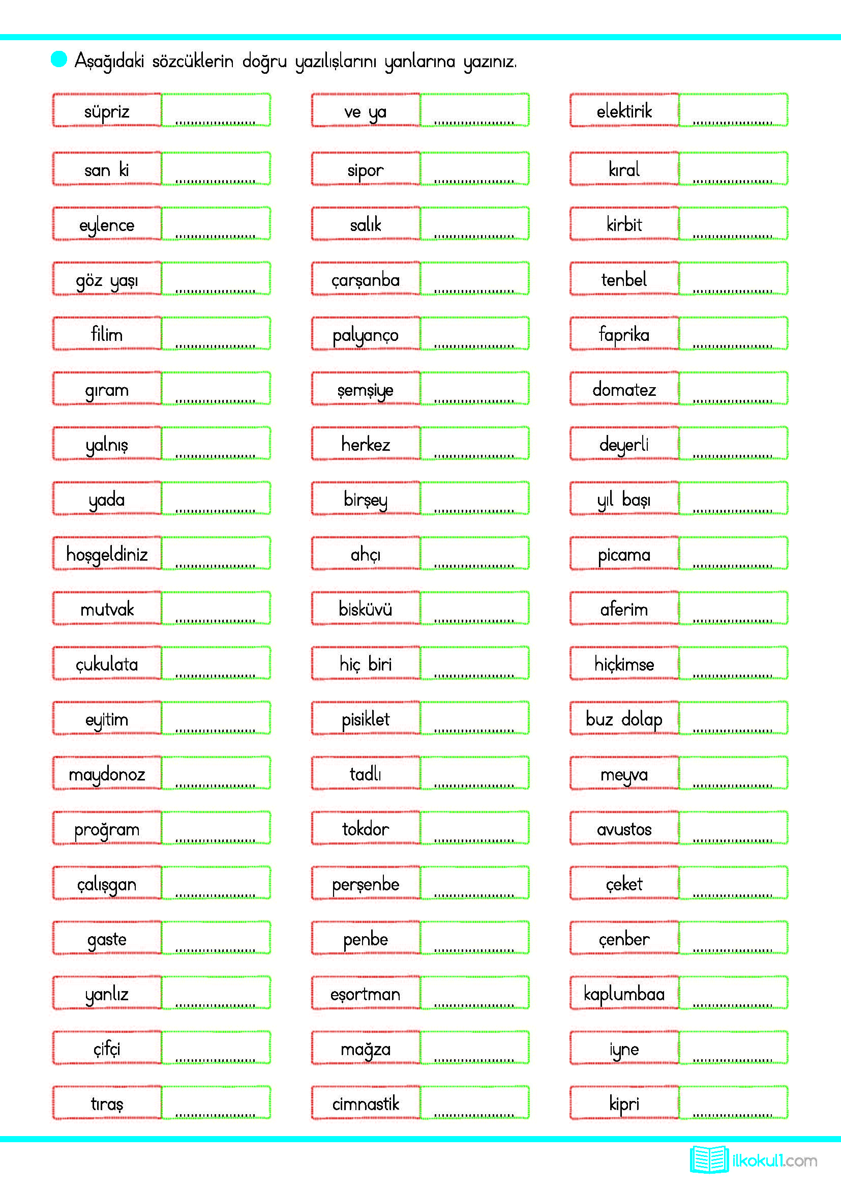- 3. Sınıf Türkçe Yazımı karıştırılan Sözcükler