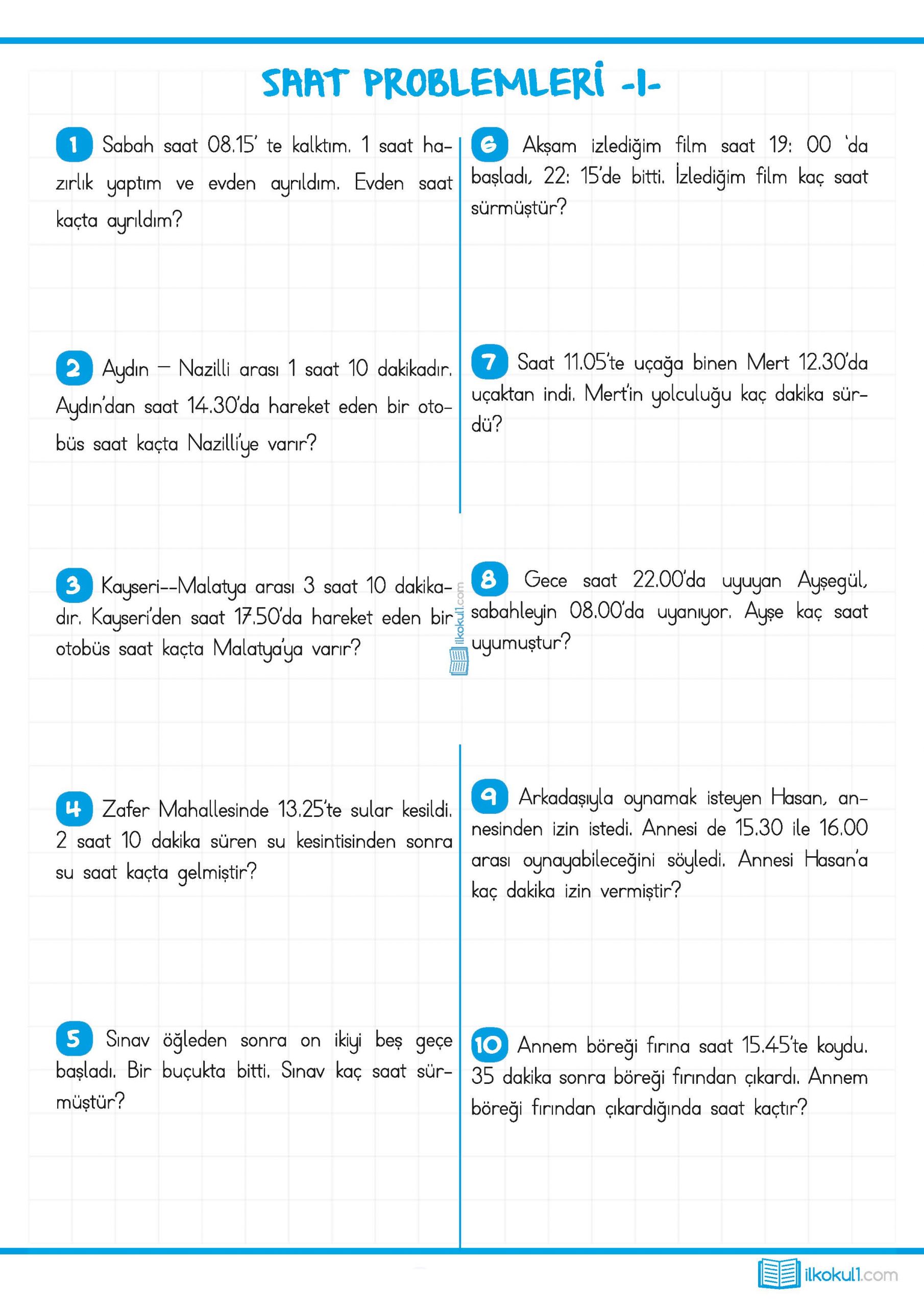 3. Sınıf Matematik Zaman Ölçüleri Problemleri...