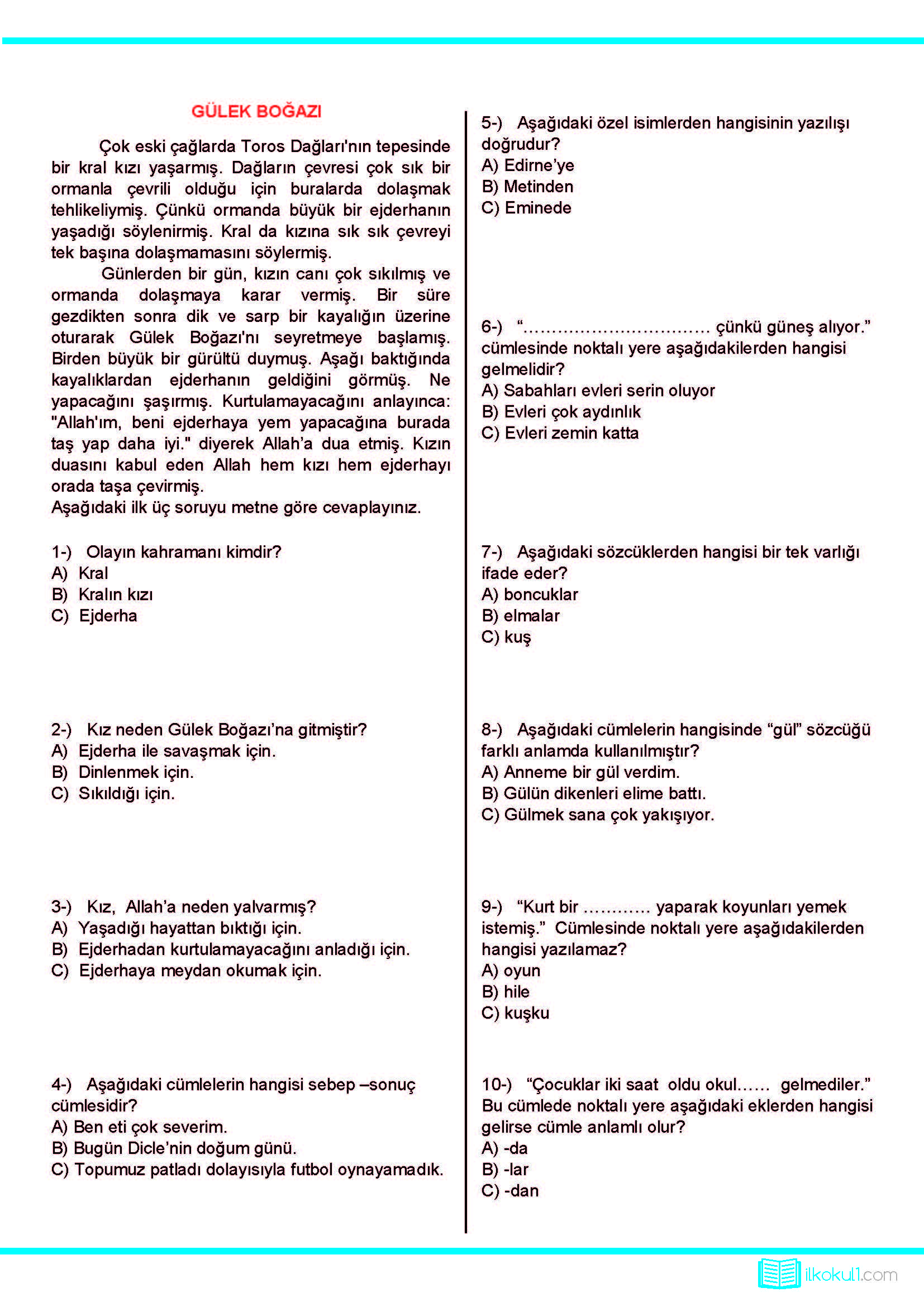 3. Sınıf Türkçe Genel Değerlendirme Testi -3-