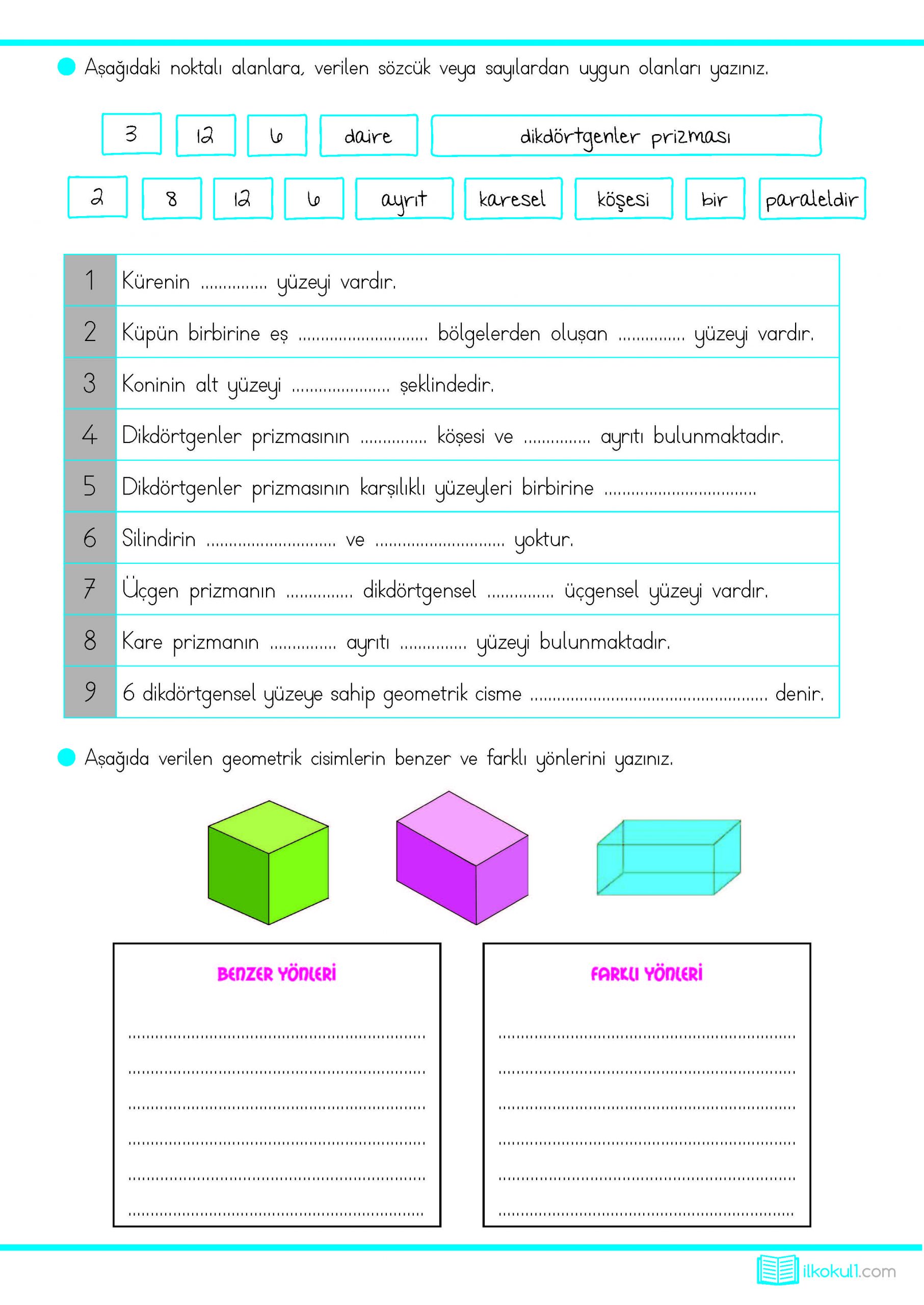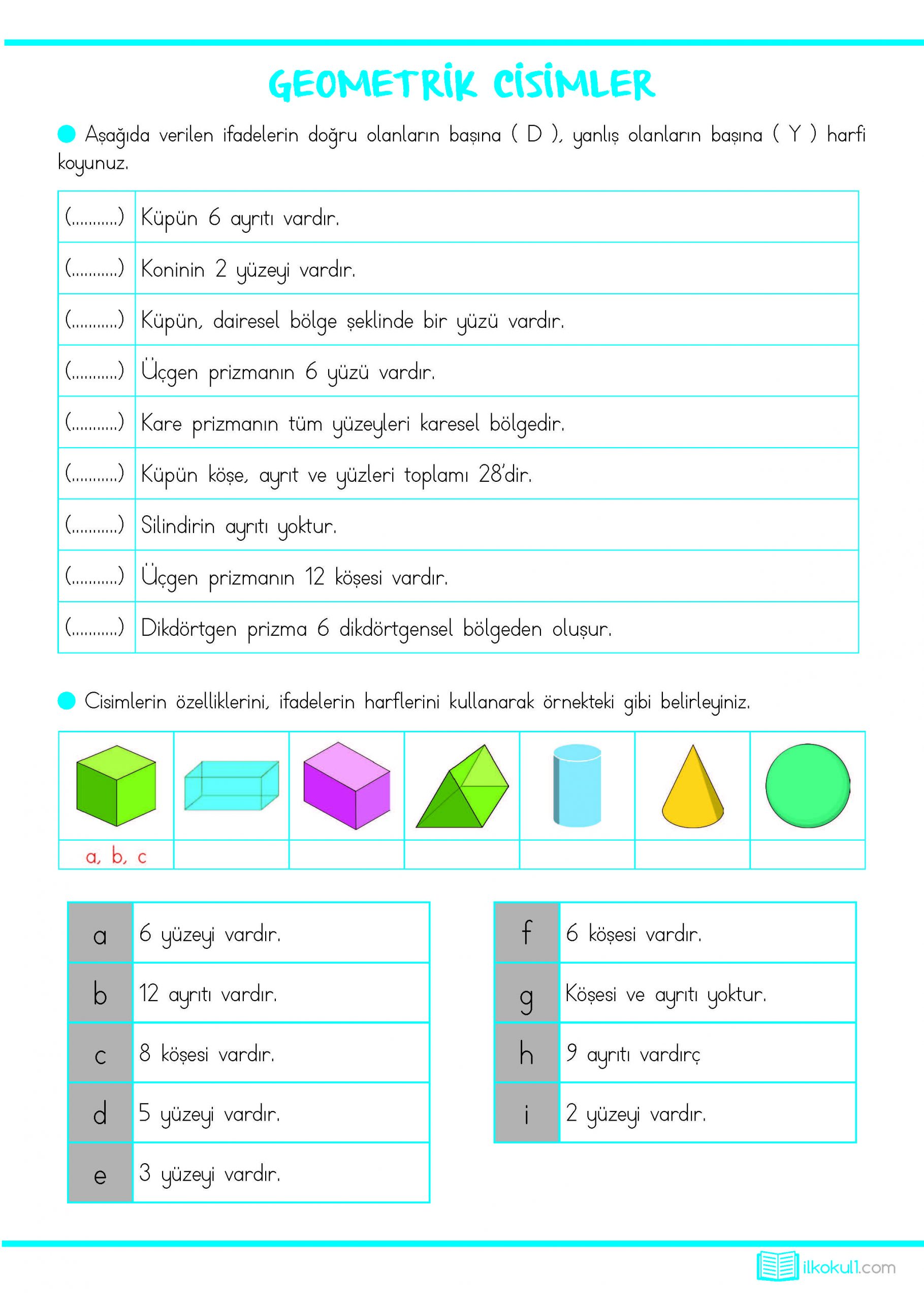 3. Sınıf Matematik Geometrik Cisimler Etkinlikle...