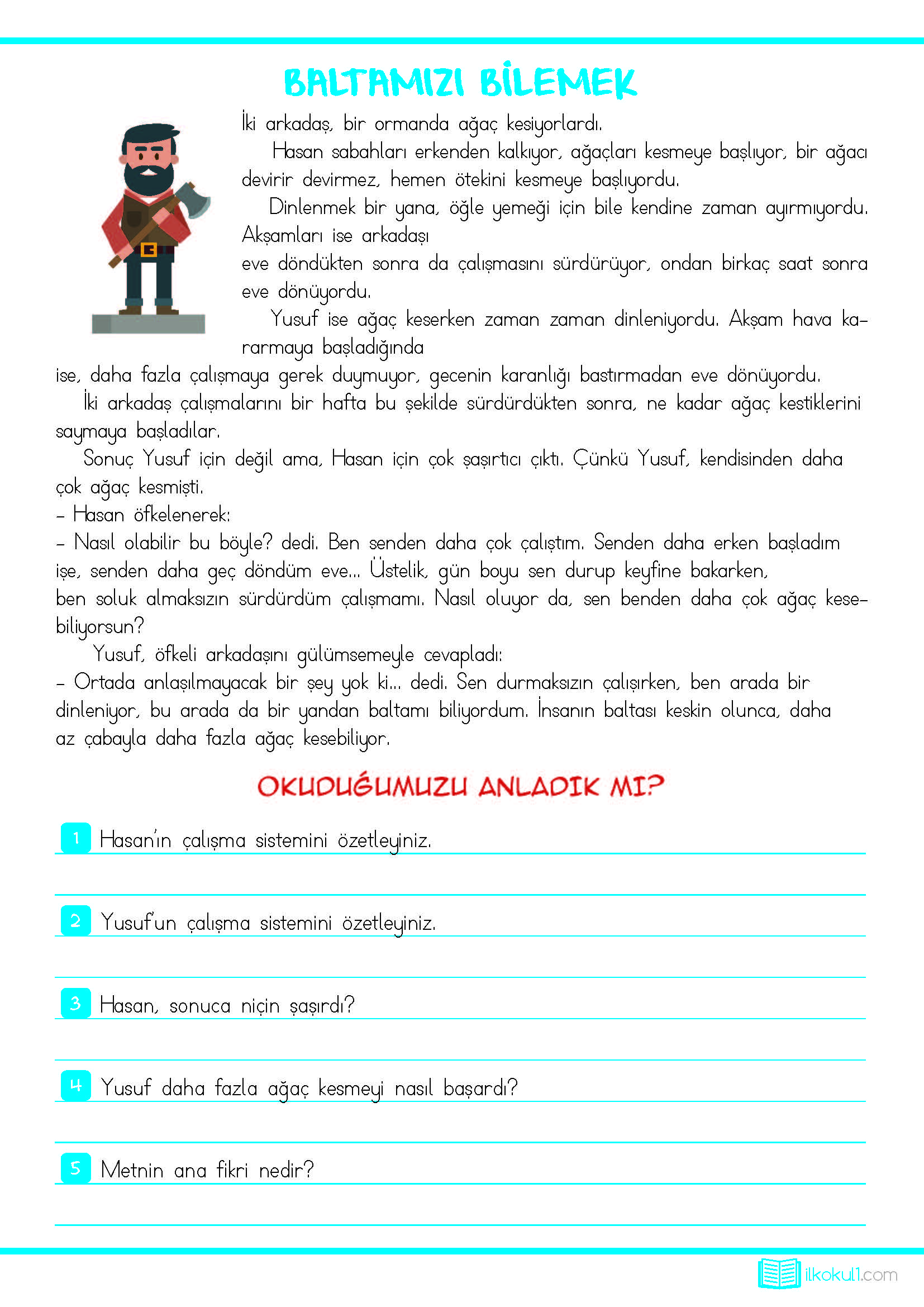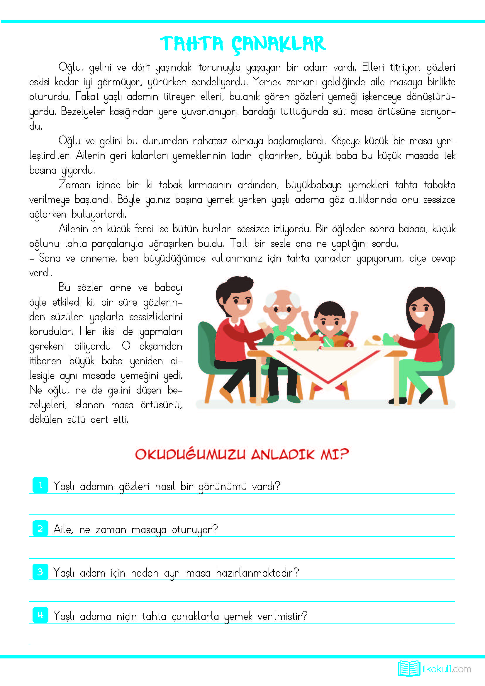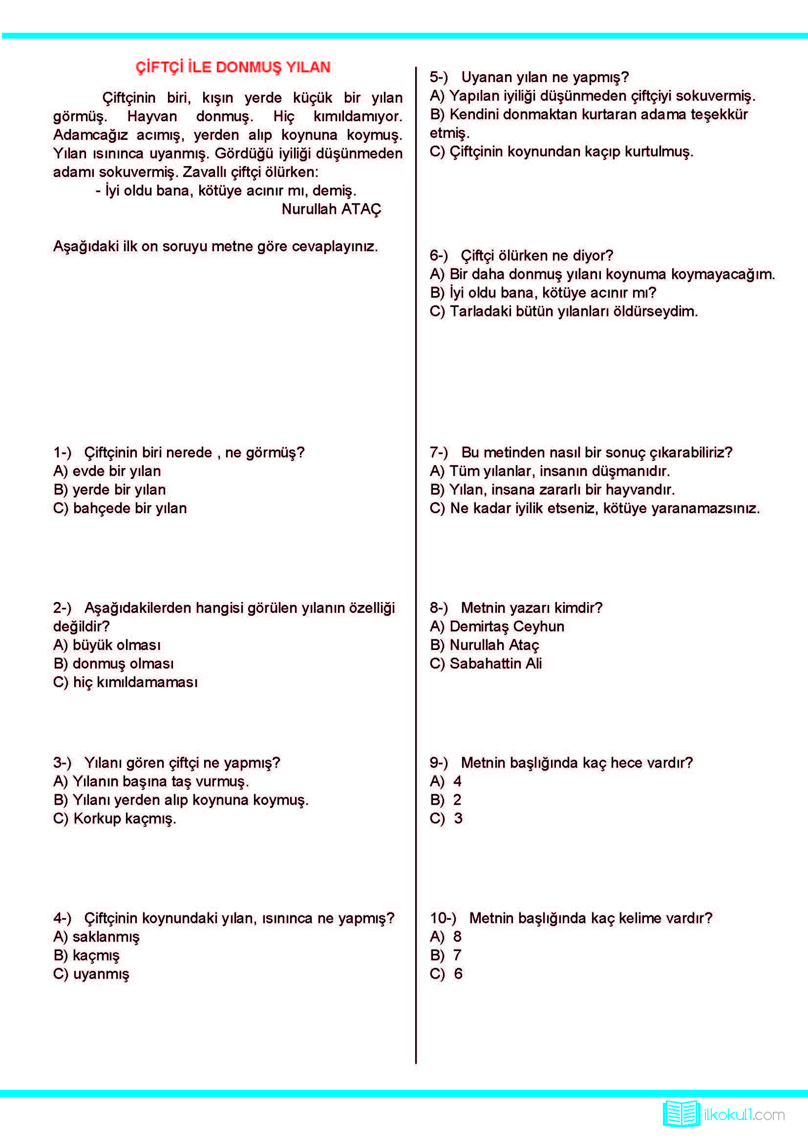 3. Sınıf Türkçe Okuma Anlama Çalışması -Ta...
