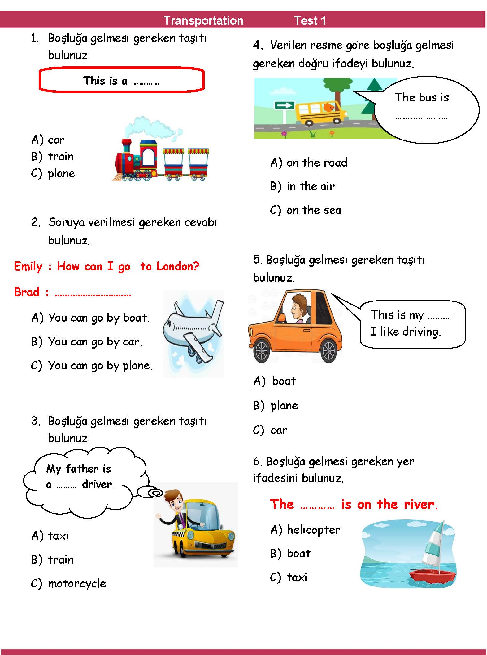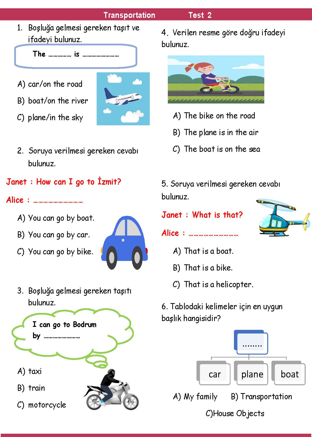 3. Sınıf İngilizce Transportation Değerlendirm...