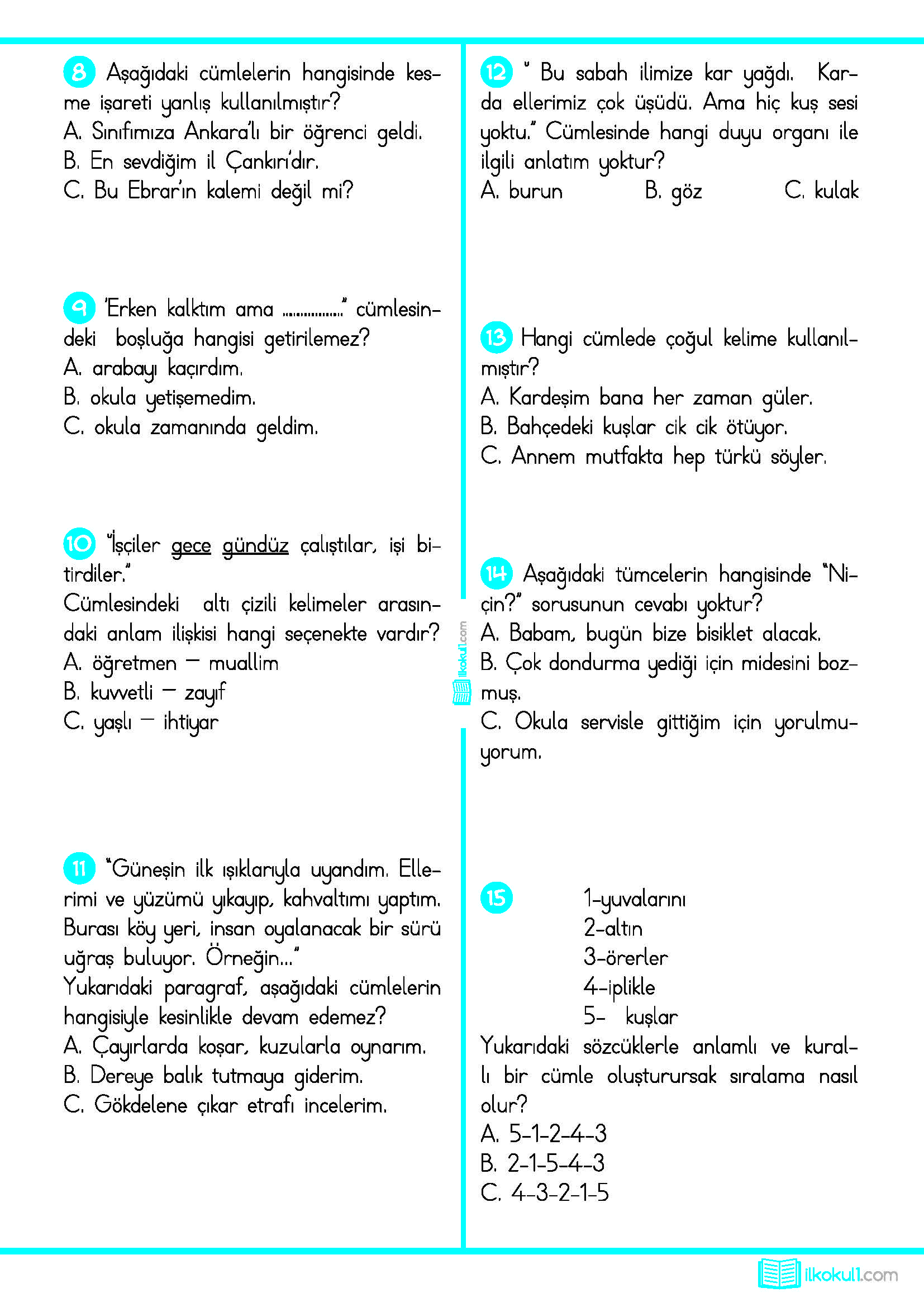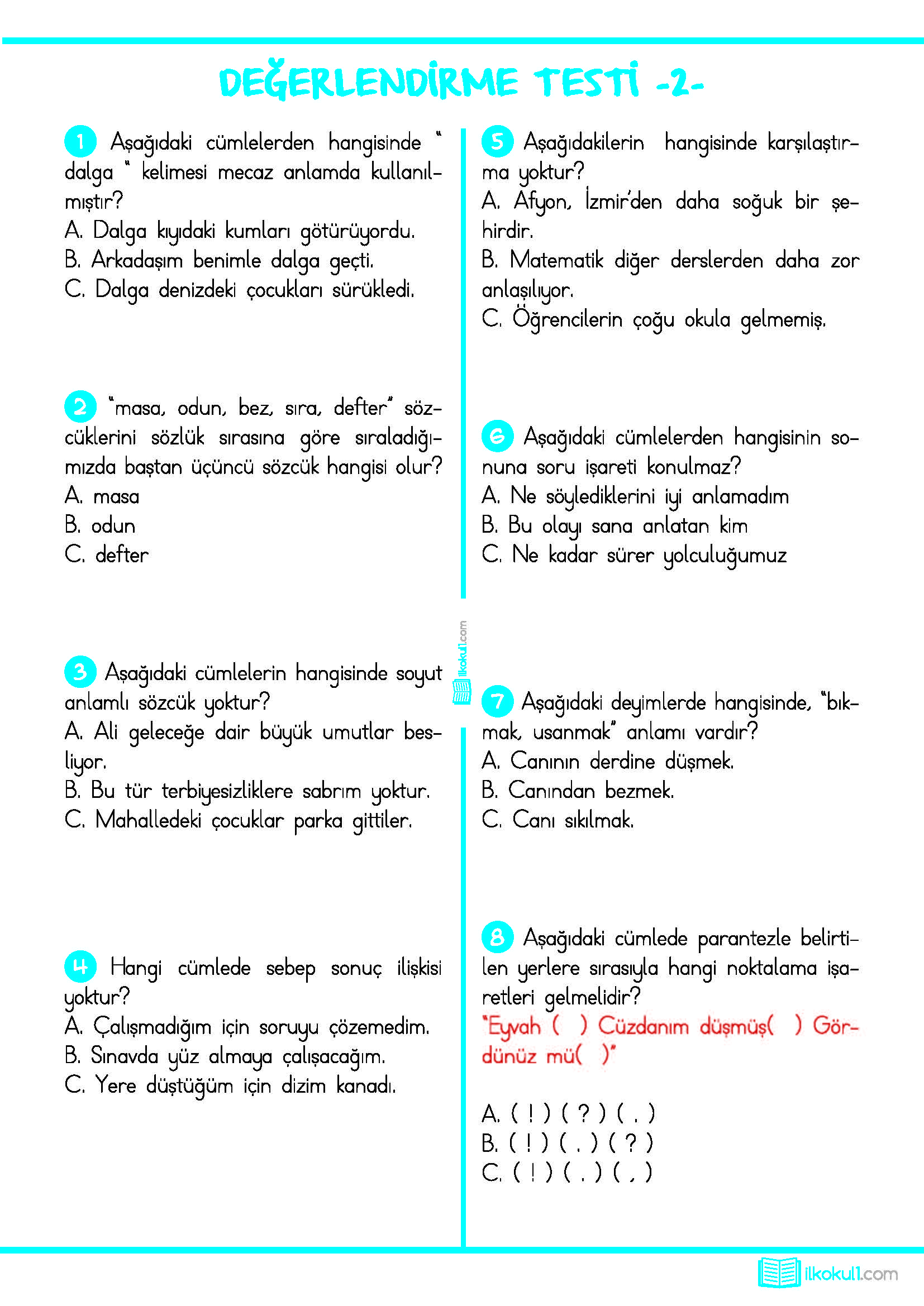 3. Sınıf Türkçe Değerlendirme Testi -2-