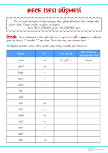 3. Sınıf Türkçe Hece Düşmesi Etkinlik Kağıdı